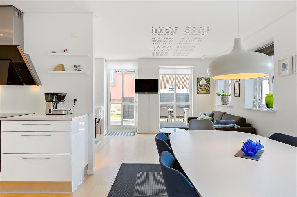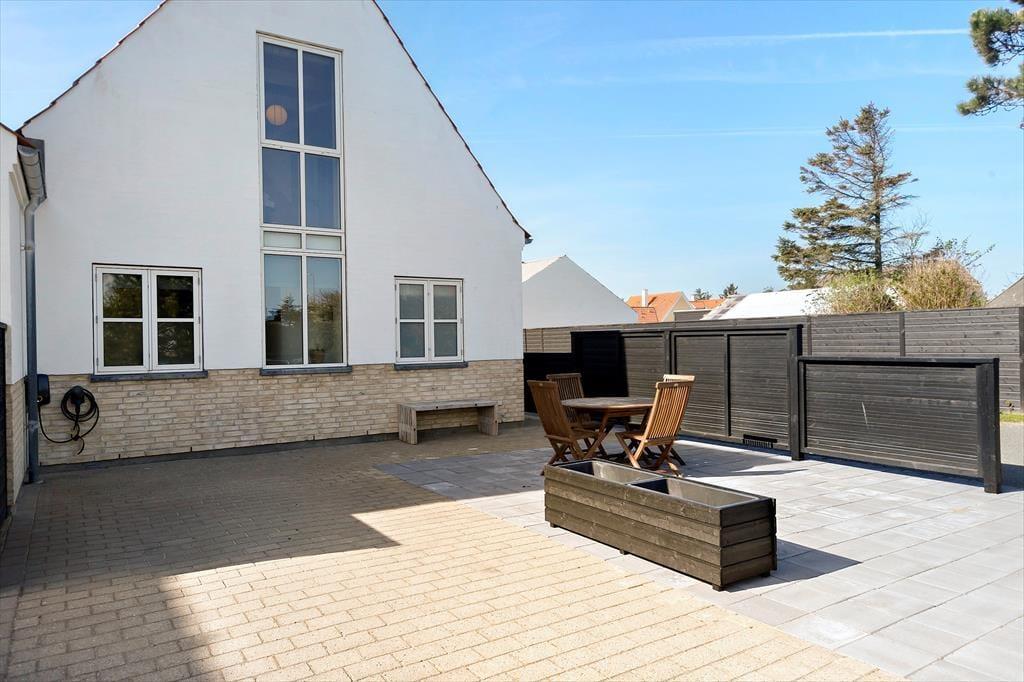 På den 35m2 store og godt afskærmede terrasse kan man nyde den danske sommer med solbadning om dagen og dejlige grillmåltider og afslapning om aftenen. Der er ikke langt til stranden i Løkken, hvor man i løbet af dagen kan være heldig at få fat i helt friskfangede fisk til aftensmaden.