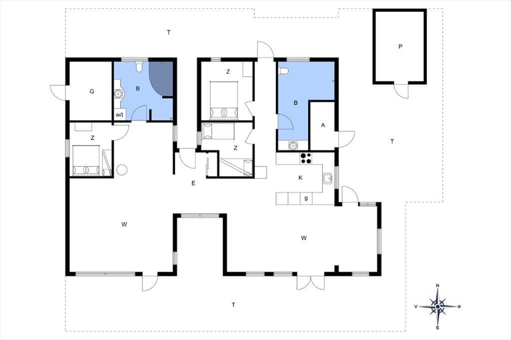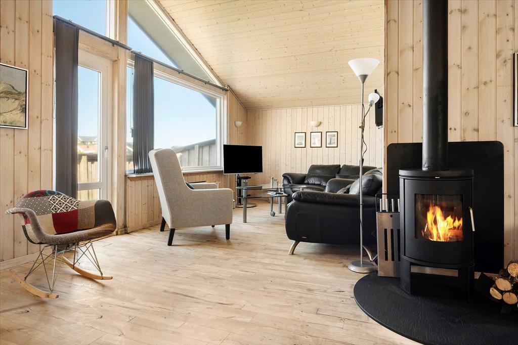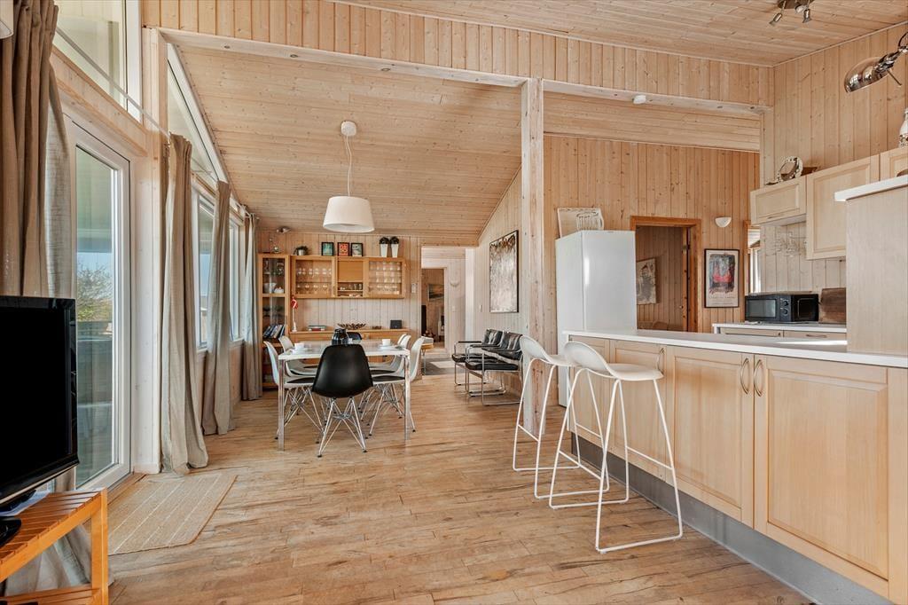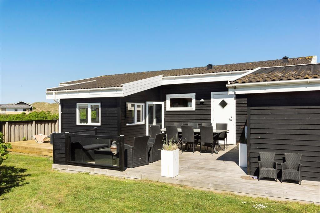 Huset er velholdt og består af to sammenhængende huse, begge med værelser, bad og opholdsrum og et fælles køkken. Indretningen gør, at man kan dele sig op eller lave forskellige aktiviteter sammen, alt efter ønsker og humør. Her er i alt plads til otte overnattende gæster, og med spabad, brændeovn og gratis internet er der lagt op til mange hyggelige stunder i det familievenlige hus. Køkkenet er udstyret med gode hårde hvidevarer, og på det ene badeværelse er vaskemaskine og tørretumbler, så man kan få vasket badetøj og håndklæder under opholdet. Desuden et tredje badeværelse med adgang fra terrassen og toilet og håndbruser, god at bruge efter en dukkert i Vesterhavet.