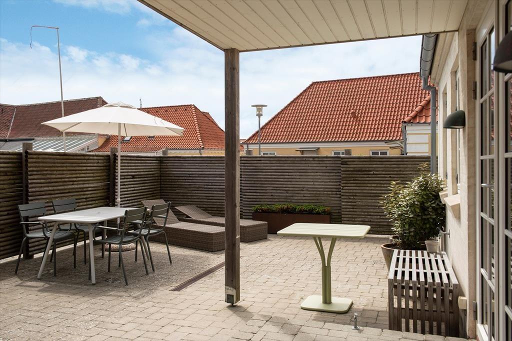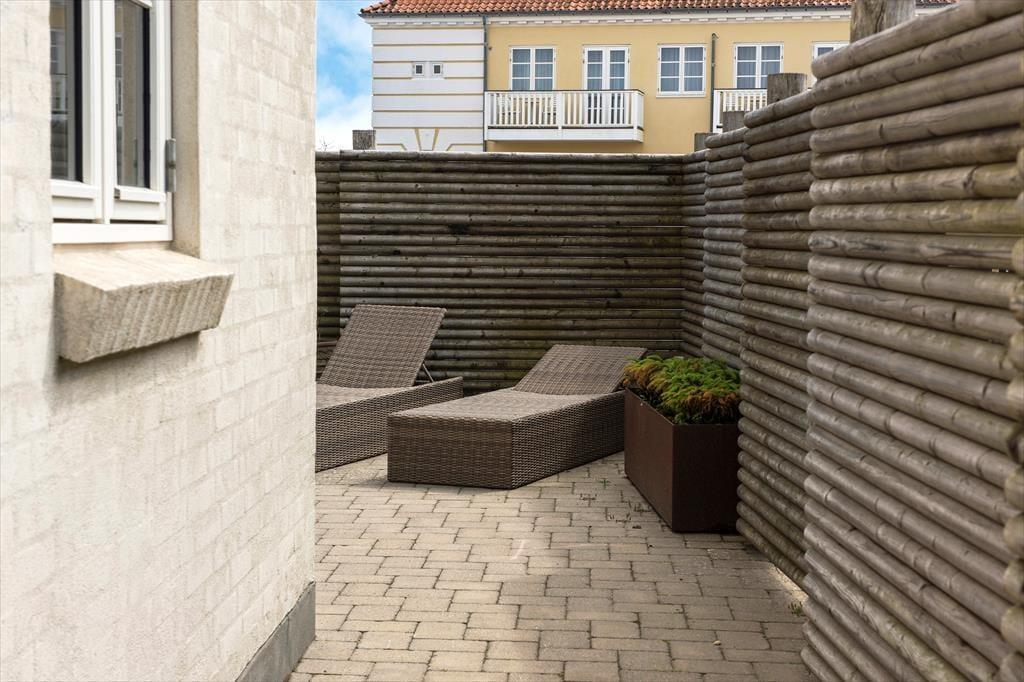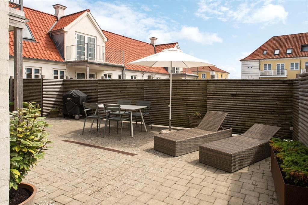 Til sommerhuset hører en lukket terrasse, hvor man kan nyde det danske sommervejr. Der er selvfølgelig havemøbler, liggestole og grill til rådighed. I gården bag terrassen er der privat parkeringsplads til rådighed.