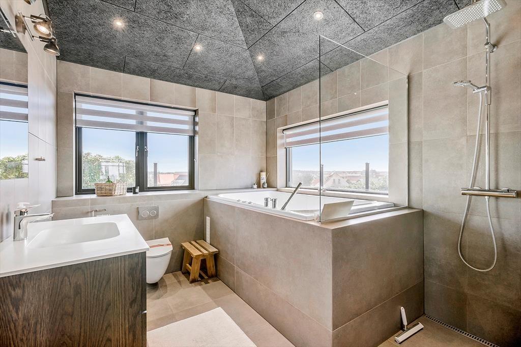 Velkommen til en kombineret by- og badeferie i luksuriøse omgivelser. Huset er bygget i 2018 og er i 2 plan, fordelt med 82 m2 i stueplan og en kælder på 44 m2. Stueplanen indeholder et kombineret køkken-alrum, et master-bedroom og et badeværelse med spabad – herfra er der panoramaudsigt over Vesterhavet og molen. Kælderen indeholder to værelser og et flot badeværelse med sauna. De perfekte rammer for et welnessophold.