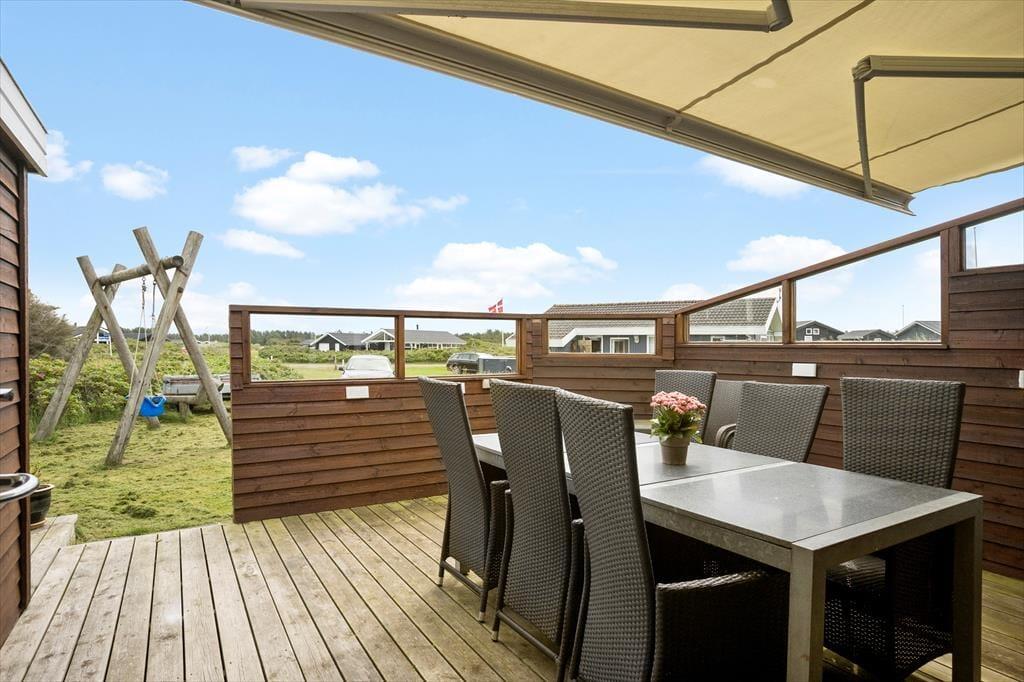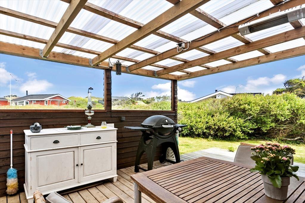 Det hyggelige sommerhus har en overdækket terrasse, som giver mulighed for at sidde udenfor, selv når vejret er lidt mere ustadigt. På terrassen kan du nyde morgenkaffen, læse en god bog eller bare tage en pause og lytte til fuglene, der kvidrer i haven. Sommerhusets have er også et ideelt sted at tilbringe tid udendørs, hvor du kan finde ro og nyde de naturskønne omgivelser. Her er der rig mulighed for både afslapning og leg – perfekt til både børn og voksne.