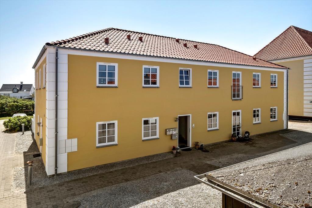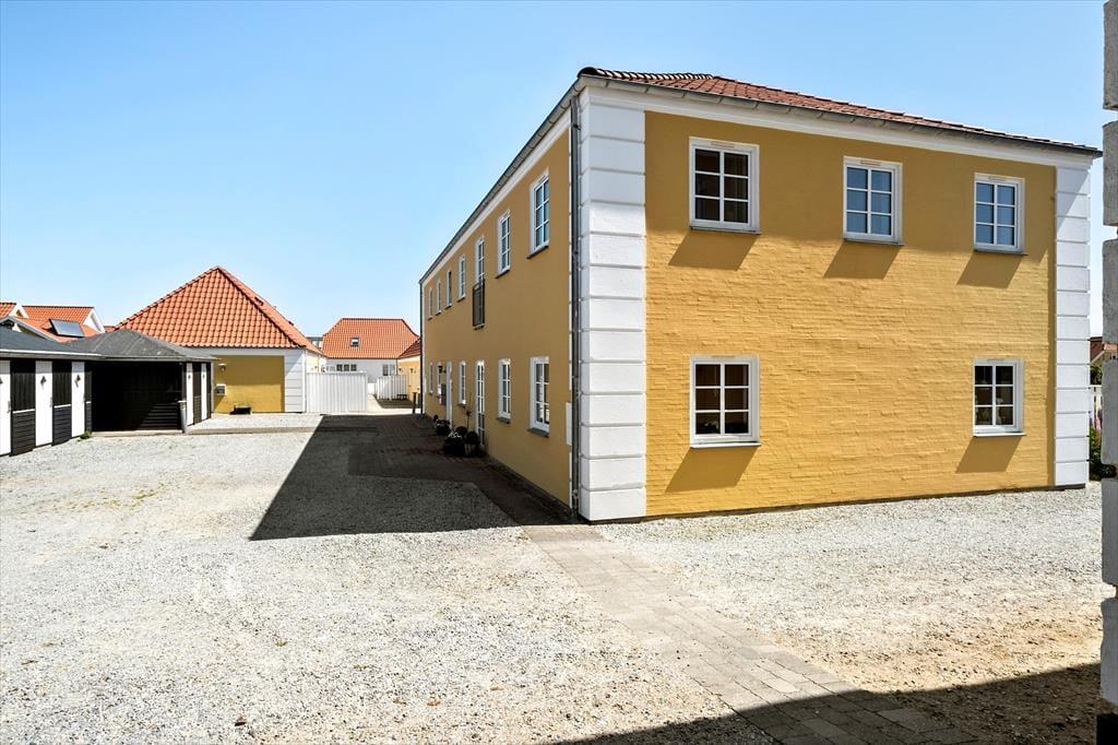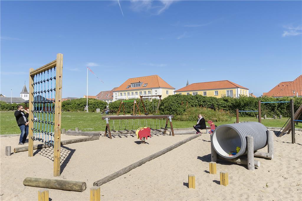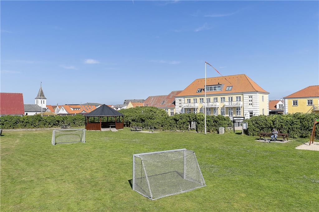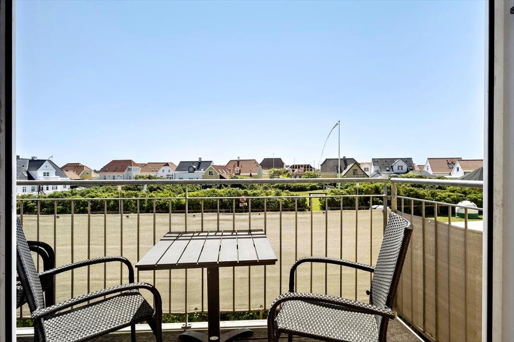 Lejligheden har en skøn lille balkon med udgang fra stuen; her kan man starte dagen med at nyde morgenkaffen, og har man været heldig at få friskfangede fisk med hjem fra stranden, kan man tilberede dem på grillen om aftenen. Lejligheden ligger som en af de inderste i komplekset, så man er godt skærmet for forbi passerende og nysgerrige blikke. Lejligheden er beliggende på første sal. Ved lejligheden ligger Markedspladsen, et dejligt, grønt område med en skøn legeplads for børn samt fælles grillområde. samt en stor boldbane.