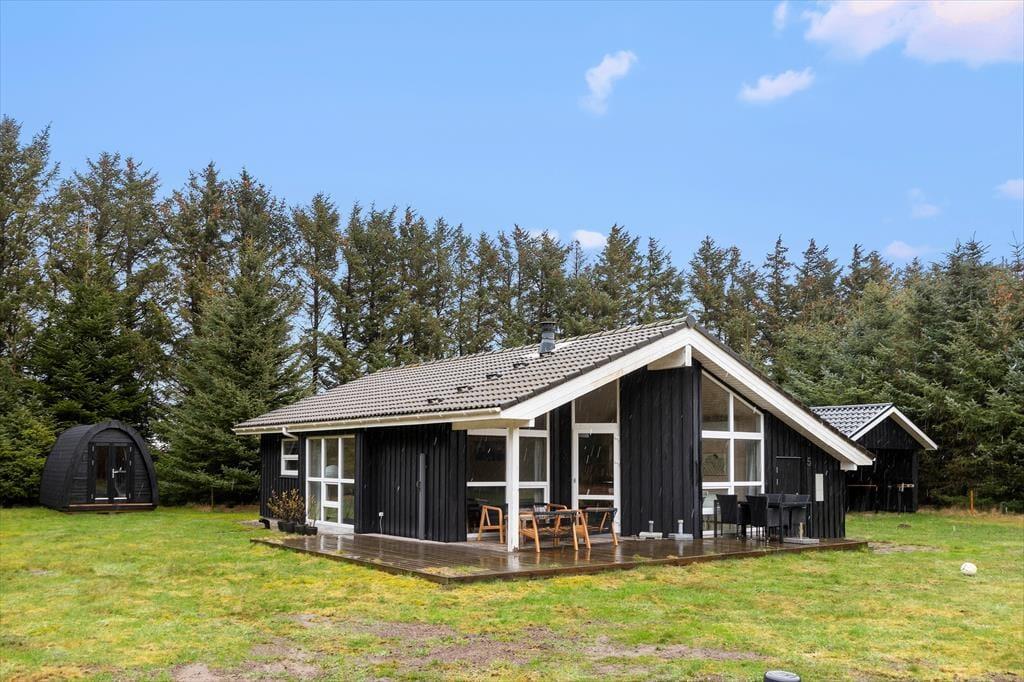 Udenfor sommerhuset finder du en dejlig overdækket terrasse, hvor du kan tilbringe timevis i ro og mag. Her er der rig mulighed for at nyde den friske luft, mens du kigger ud over den store naturgrund, der omkranses af træer og skaber en dejlig privat atmosfære. Du vil ofte få besøg af egern, fasaner og rådyr, som færdes i området. Omkring huset er der masser af plads til både leg og afslapning, og den overdækkede terrasse indbyder til hyggelige måltider eller bare et stille øjeblik med en god bog. Fra sommerhuset er der kun få minutters gang til stranden, så du kan hurtigt tage en dukkert eller gå en tur langs den smukke kystlinje, hvor du kan mærke sandet mellem tæerne og høre bølgerne rulle ind mod kysten.