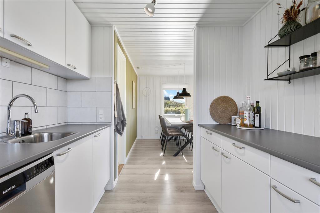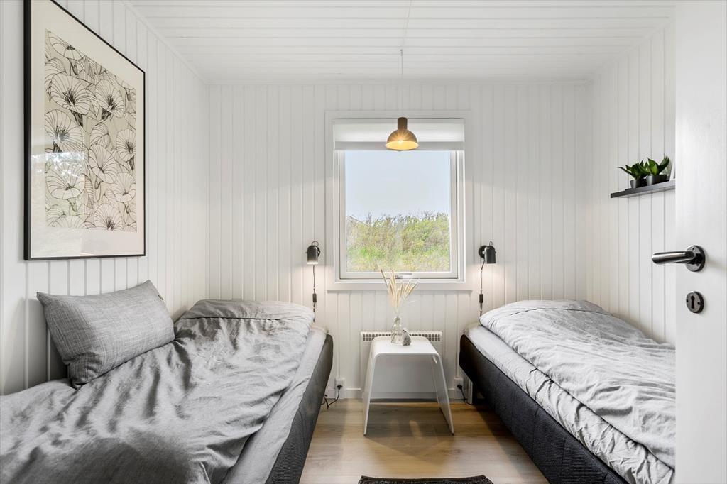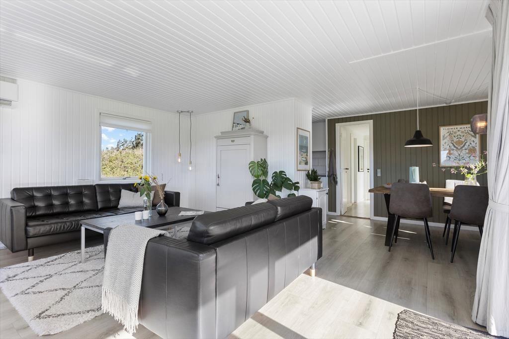 Moderniseringen af sommerhuset er sket i 2022, og her har man gjort brug af en lys farvepalet og udvalgt det helt rette møblement. Stuens brændeovn er med til at understrege hyggestemningen, og når I samtidig kan kigge ud mod vest på områdets små klitter og kønne sommerhuse, er alt, som det skal være. I stuen er der for øvrigt også varmepumpe med køl samt fladskærms-tv med parabol og Chromecast tilsluttet, mens køkkenet er pænt, veludstyret og har godt med arbejdsplads. Et badeværelse med bruser, gulvvarme og vaskemaskine hører også med til planløsningen, og endelig ligger tre gode soveværelser samlet i den østlige ende af huset.