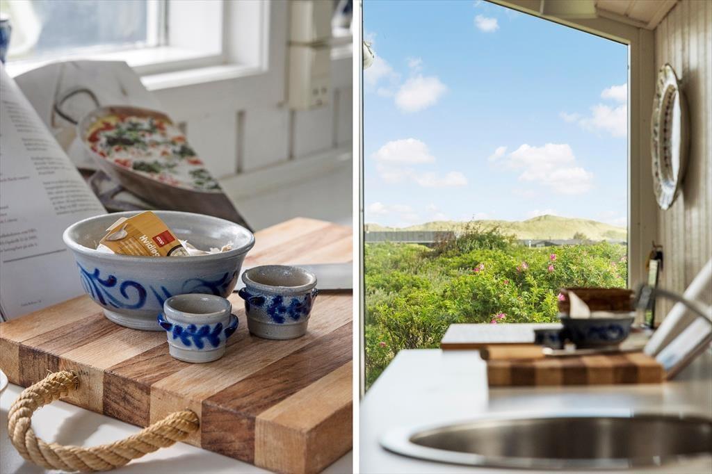 Dette klassiske træsommerhus er blevet renoveret i 2022, og resultatet er en velindrettet feriebolig med en superhyggelig atmosfære. Omgivelserne spiller også en vigtig rolle, for det er skønt at kunne kigge ud på Løkkens smukke kystlandskab – endda med kig til Vesterhavet, der venter 250 meter væk.