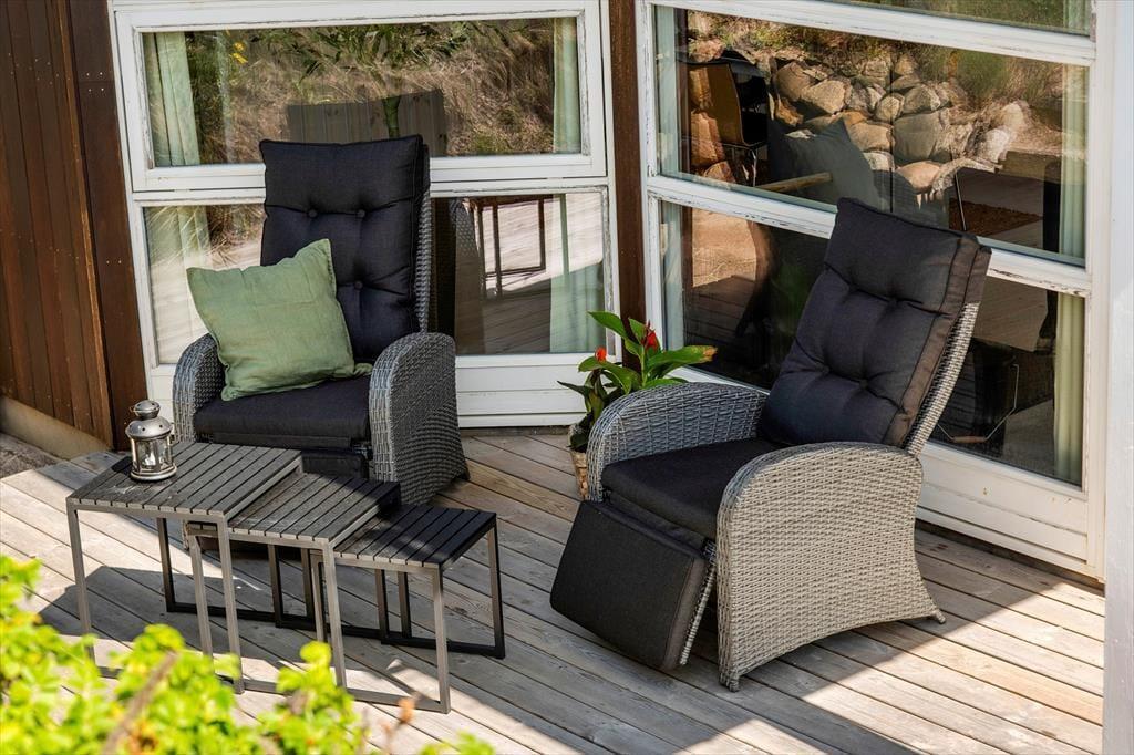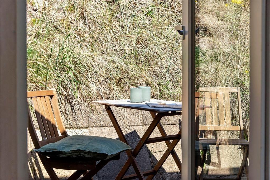 Hvis solen skinner, når du har brygget morgenkaffen i køkkenet, kan du passende tage en dampende kop med ud i det fri – for er det ikke noget med, at feriens mad og drikke smager endnu bedre, når den indtages i frisk havluft og med duftende hybenroser lige i nærheden? Rundt om huset er der flere gode terrasseområder at vælge imellem, og flere af dem ligger godt i læ af klitterne, så det er nemt at finde en ugeneret opholdsplads at nyde livet på. Om aftenen gør gasgrillen det nemt at tilberede de sommerlige måltider udenfor, og hvis solnedgangen ser ud til at blive særligt flot, kan du hurtigt smutte op på den højeste klittop eller helt ned på stranden for at nyde udsigten derfra.
