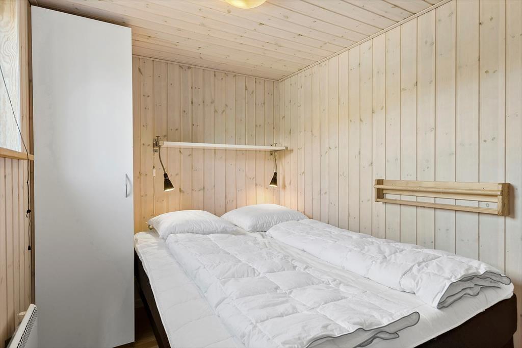 Sommerhusets rum har et lyst og indbydende indtryk – det gælder både de tre soveværelser, badeværelset og entréen, men især opholdsrummet, hvor stuen og køkkenet er forenet. En halvmur skærmer køkkenet af, så alt efter humøret kan du stå og hygge dig med madlavningen i dine egne tanker eller hyggesnakke med resten af selskabet. Spisebordet er et oplagt samlingspunkt, hvis ikke det er sofaen, der inviterer til en tilbagelænet stund med en spændende film og en stak magasiner at bladre i. Og hvis solskinnet ser alt for tillokkende ud, kan du i stedet åbne terrassedøren og flytte driverlivet ud i det fri.