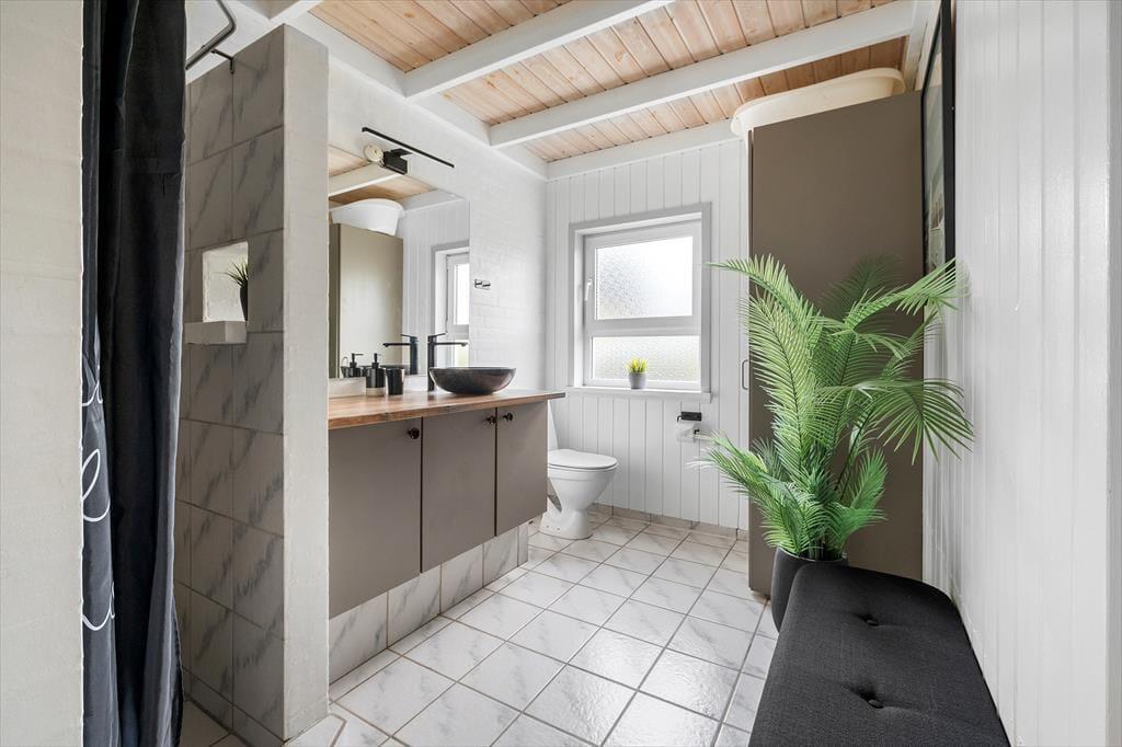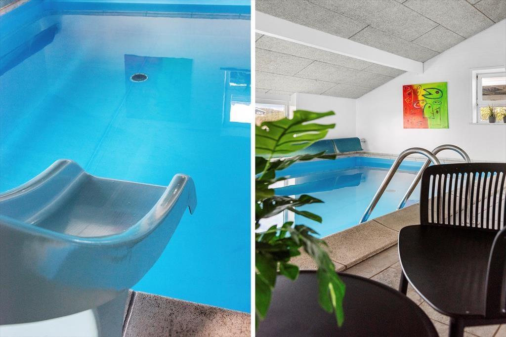 Indenfor mødes du af et yderst velholdt sommerhus med en gennemtænkt indretning, hvor loft til kip og store vinduespartier skaber en skøn atmosfære og et fantastisk lysindfald. Husets hjerte er opholdsrummet, hvor køkkenet ligger i åben forbindelse med stuen, så du kan kokkerere, mens samtalen går livligt ved spisebordet eller foran den knitrende brændeovn. Fra stuen er der kig til den indbydende poolafdeling, hvor spa og sauna giver ekstra luksus og afslapning til ferien. Her kan du tage en dukkert, få varmen i saunaen eller slappe af i boblerne, når dagen går på hæld. Sommerhuset byder desuden på tre gode værelser, to badeværelser samt en hyggelig hems med ekstra plads til afslapning eller leg.