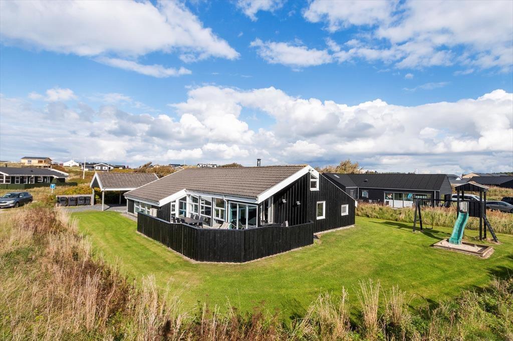 Udenfor venter en stor naturgrund, som indbyder til både leg og ro. Her er der masser af plads til, at børnene kan spille bold eller løbe rundt, mens de voksne nyder en kop kaffe på terrassen. Om sommeren kan du høre fuglene synge og mærke den friske havluft, mens solen varmer, og når aftenen falder på, kan grillen tændes til en hyggelig middag under åben himmel. Beliggenheden tæt på stranden gør det let at tage på spontane ture til vandet – mærke sandet mellem tæerne, lade bølgerne skylle ind over fødderne og opleve, hvordan Vesterhavet viser sig i al sin kraft og skønhed.