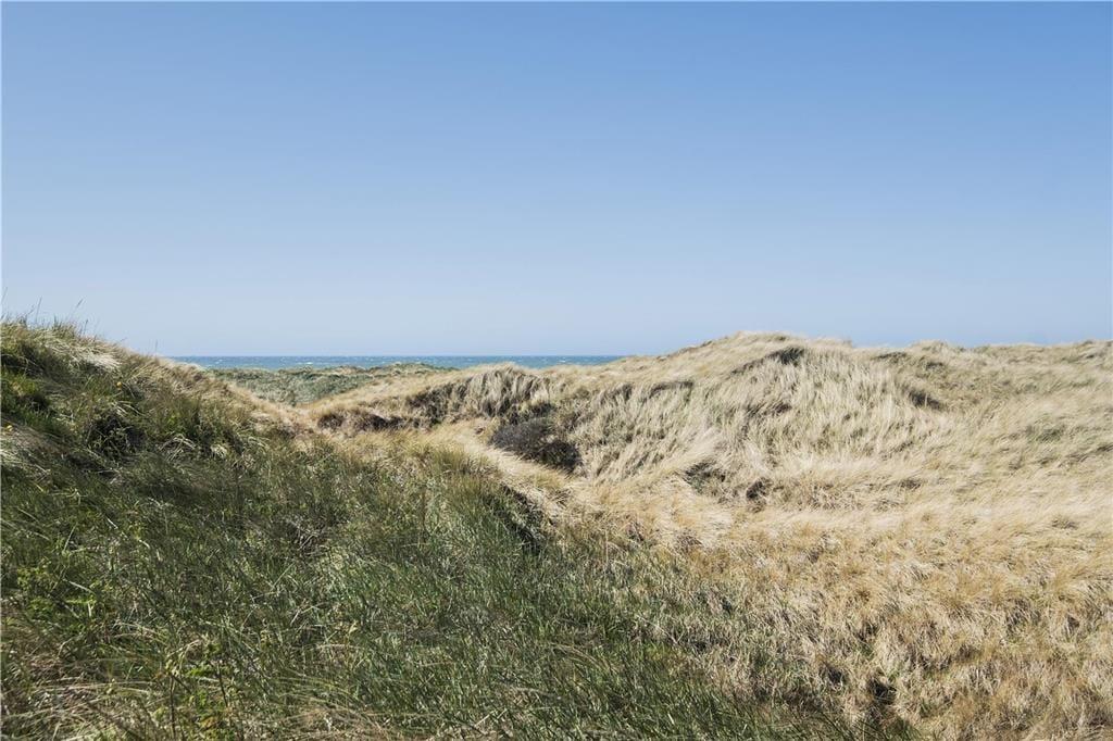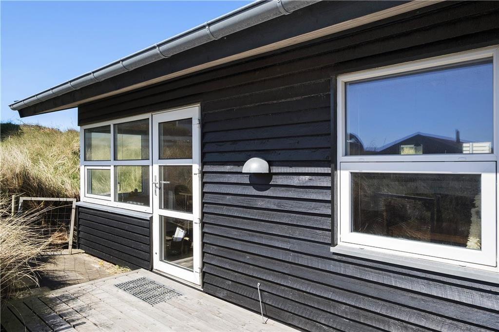 Fra opholdsrummet har man adgang til en ny og flot træterrasse mod syd. Sommerhuset ligger på en klitgrund med Vesterhavet kun få meter væk. Fra terrassen kan man høre bølgernes brusen, mens man sidder i fuldkommen læ. Det er ikke muligt at parkere bilen lige ved huset, men på vendepladsen lige foran.