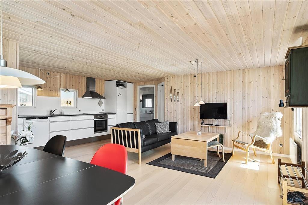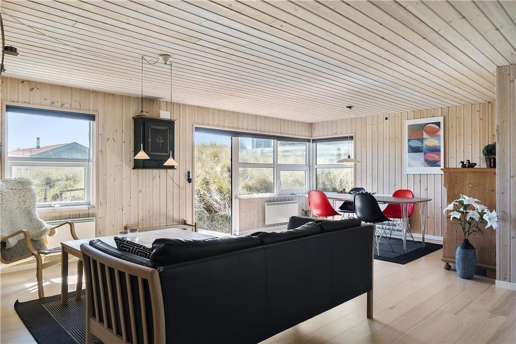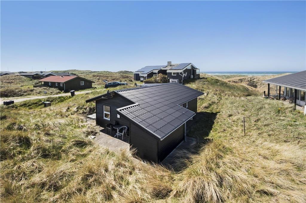 Dette toprenoverede sommerhus ligger tæt på Vesterhavet og den brede sandstrand ved Løkken. Huset ligger godt beskyttet i en lille klitgryde.