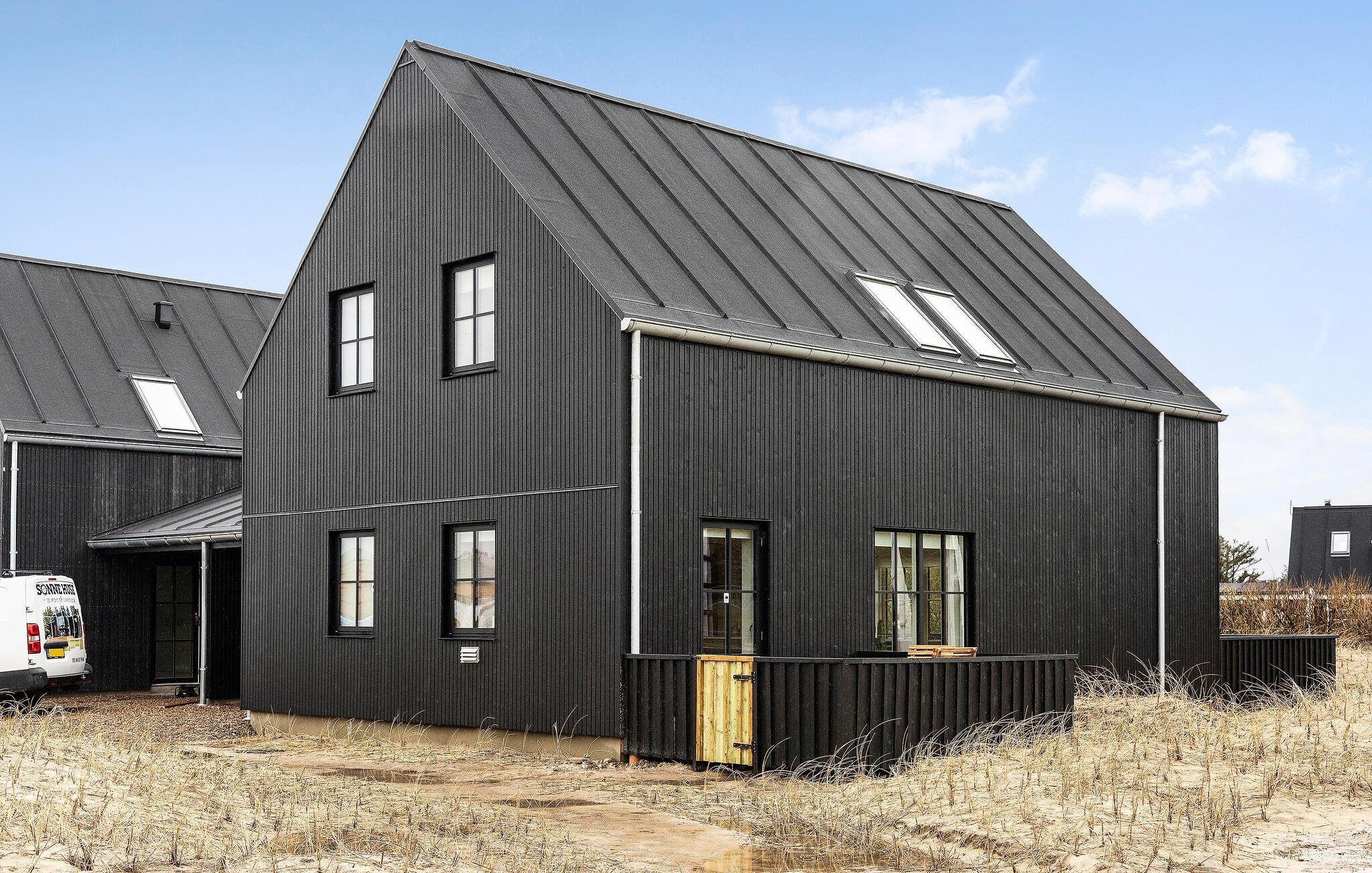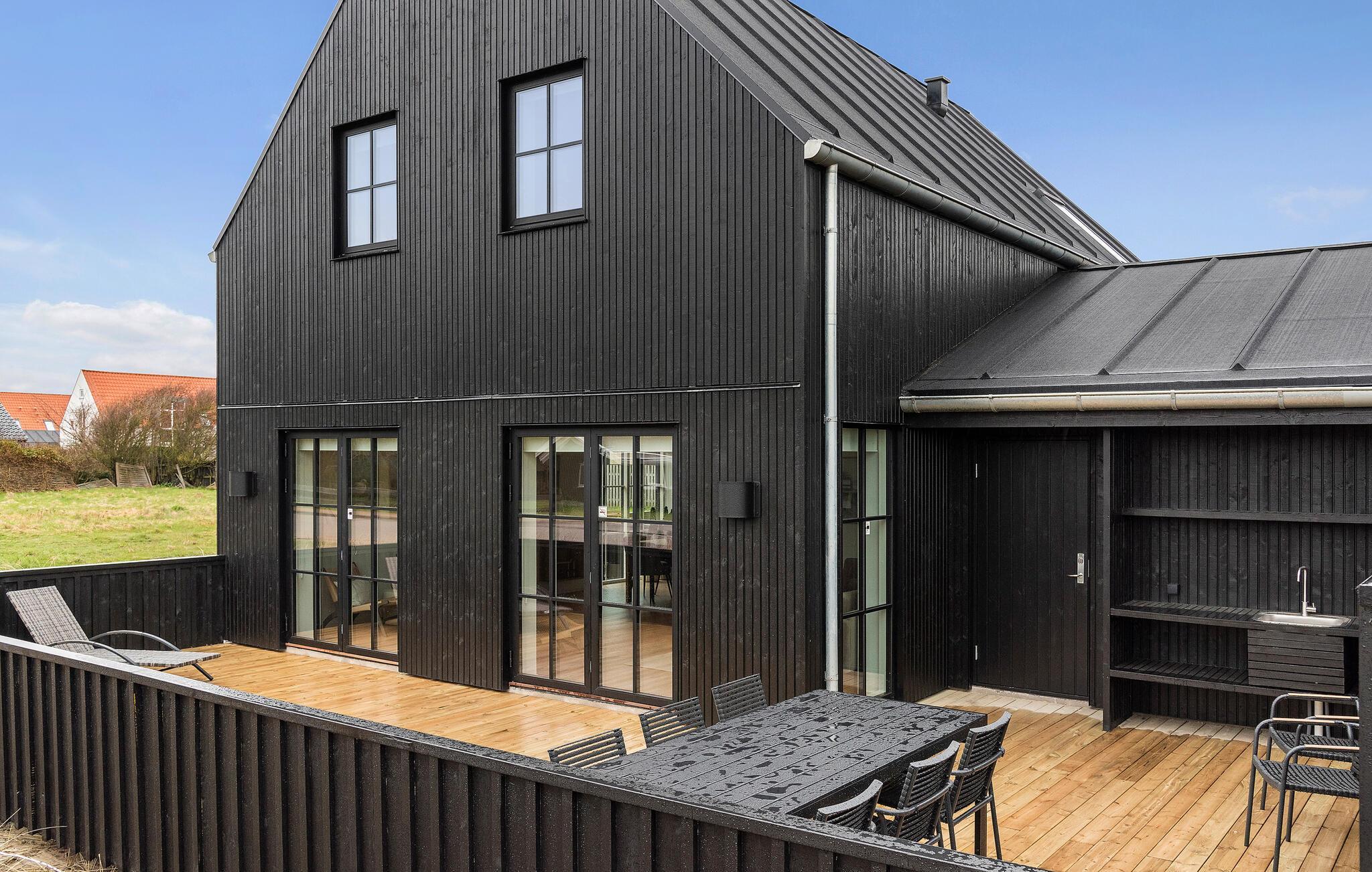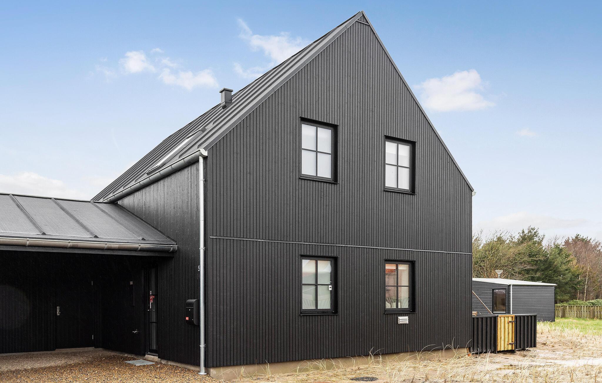 Stort, energivenligt træhus tæt på Løkken Strand med moderne faciliteter og dejlige terrasser til afslapning.
