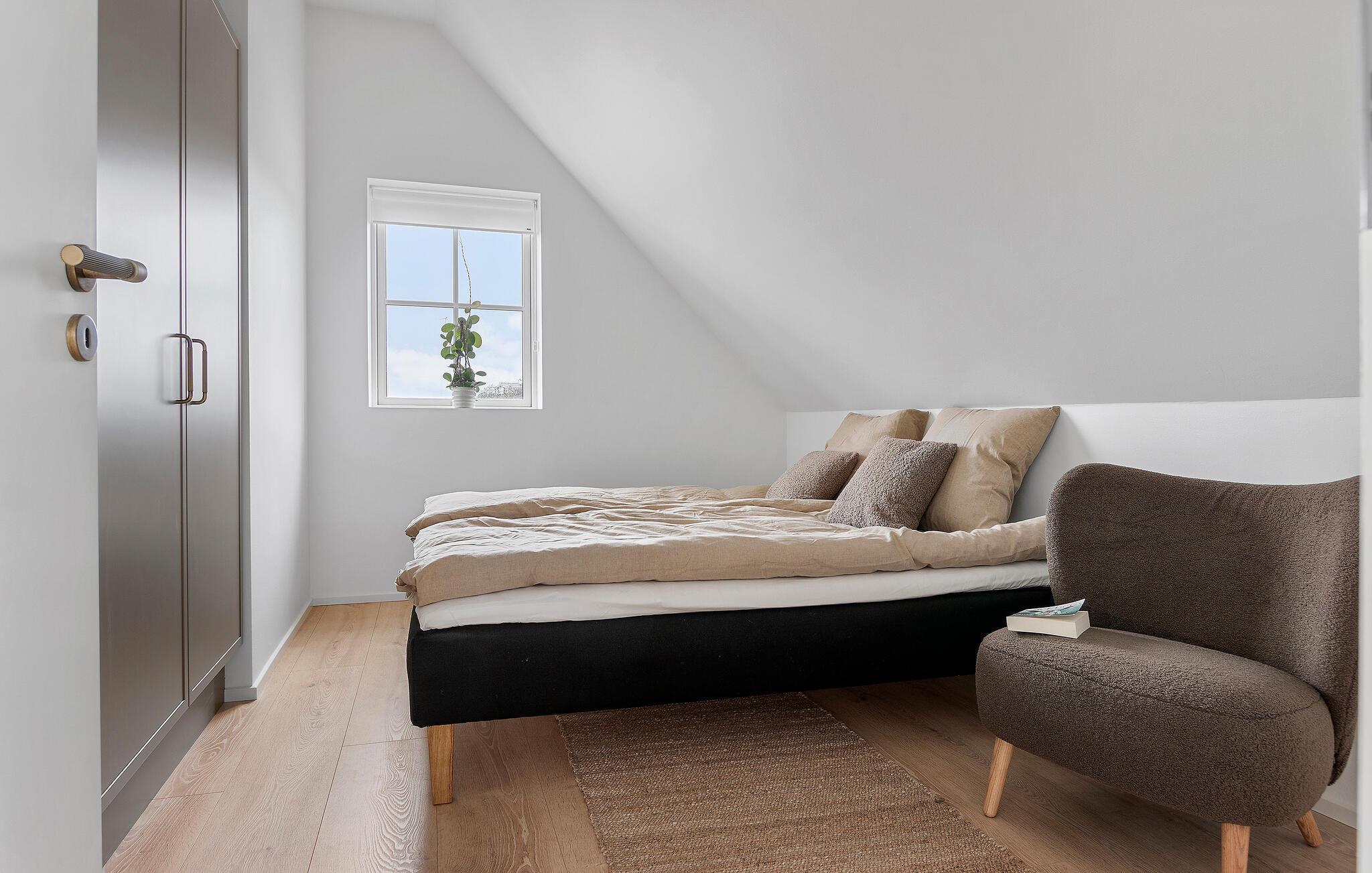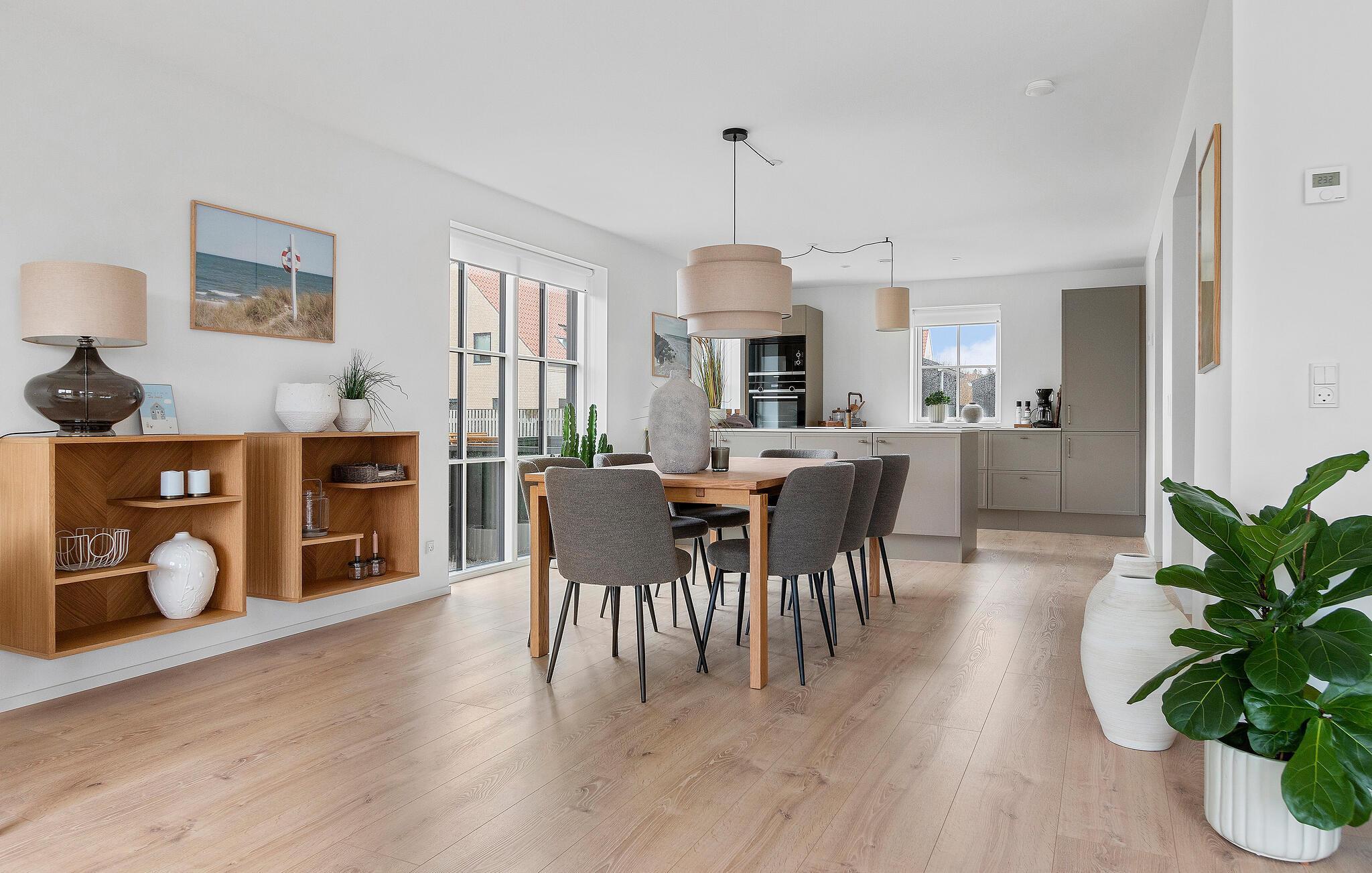I dette flotte og komfortable træhus får I rigeligt med plads og en god rumfordeling over to etager til en ferie med den større familie. Huset er flot indrettet med varme trægulve, pæn kunst på væggene og store vinduespartier, der giver den åbne stue et dejligt lysindfald og udsigt til terrassen. Nyd godt af de moderne faciliteter i køkkenet og gør madlavningen til et hyggeligt fællesprojekt, inden der dækkes op til det store festmåltid ved spisebordet. Senere kan I hive brætspillene frem eller trække over i sofaen, der er stor og komfortabel, og som indbyder til filmhygge med gode snacks på de køligere dage.