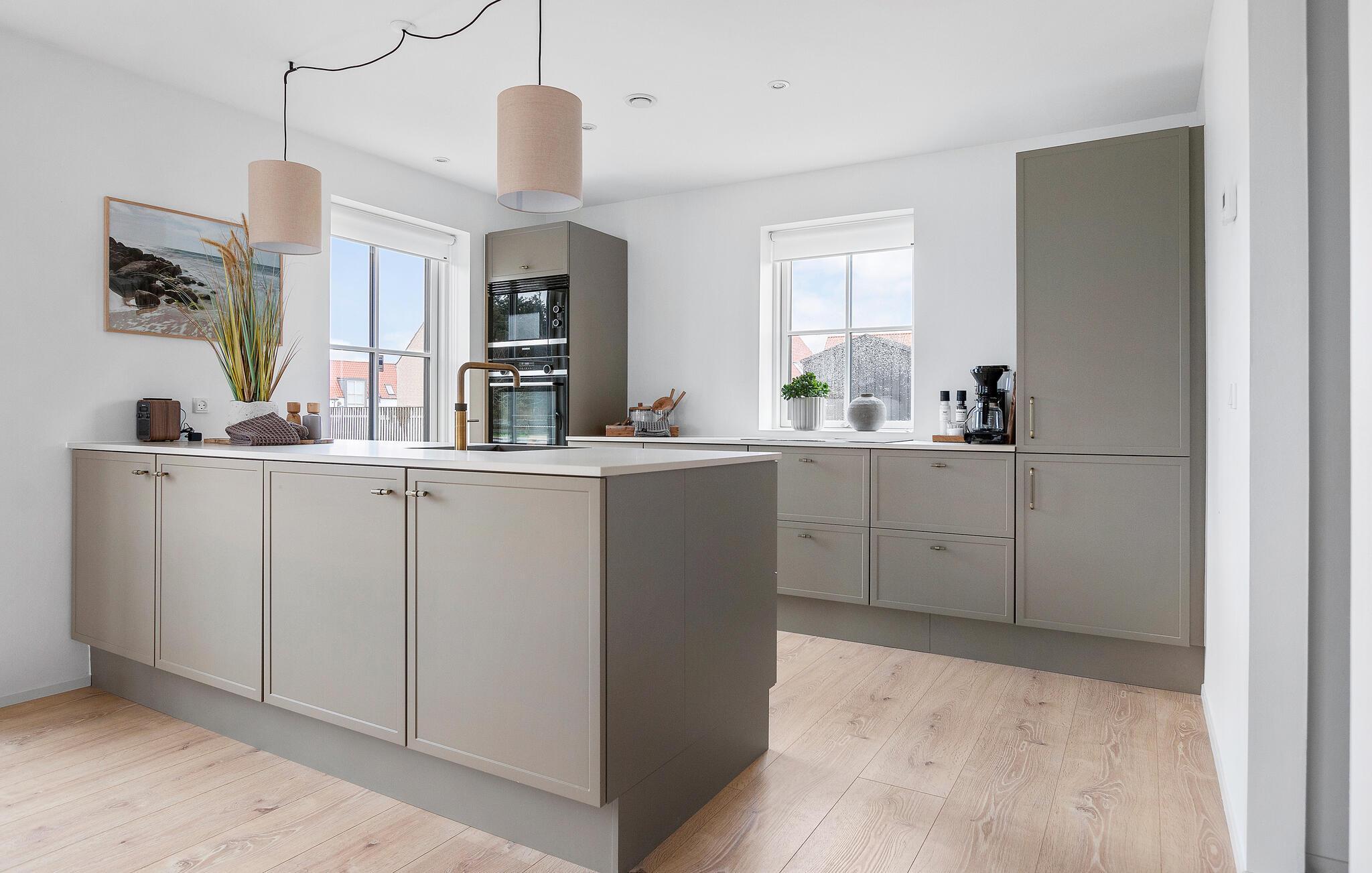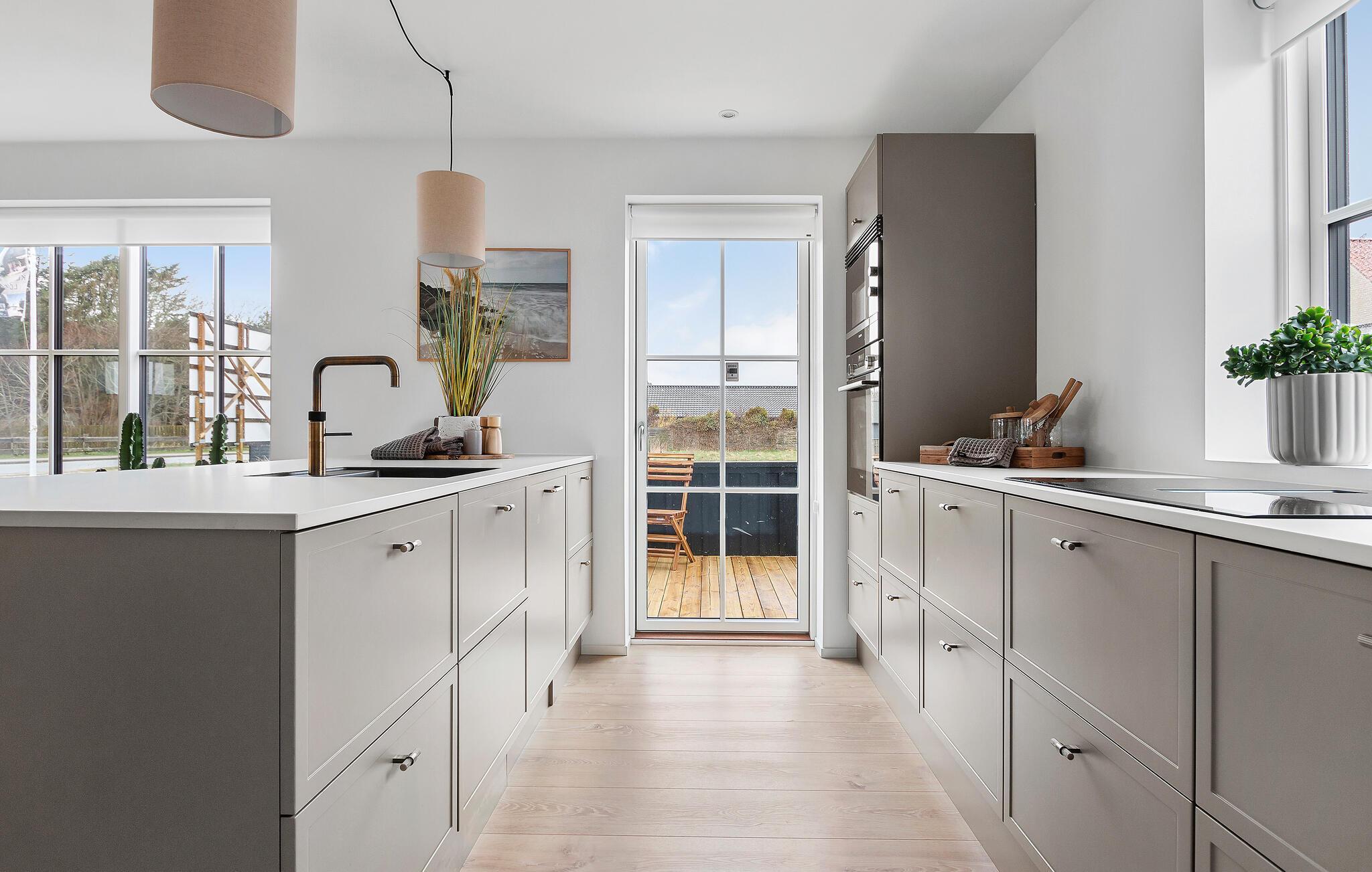 På de varme dage kan I trække ud på de skønne terrasser, der ligger dejligt beskyttet mod syn udefra. Nyd solen i mange timer her og lad børnene løbe rundt og lege på grunden, mens de voksne tager den lidt med ro med en god bog og en kop kaffe eller drink i løbet af dagen. Til huset hører et lækkert udekøkken, hvor I kan tilberede familiens livretter, inden dagen rundes af med et godt glas vin under den lune aftensol.