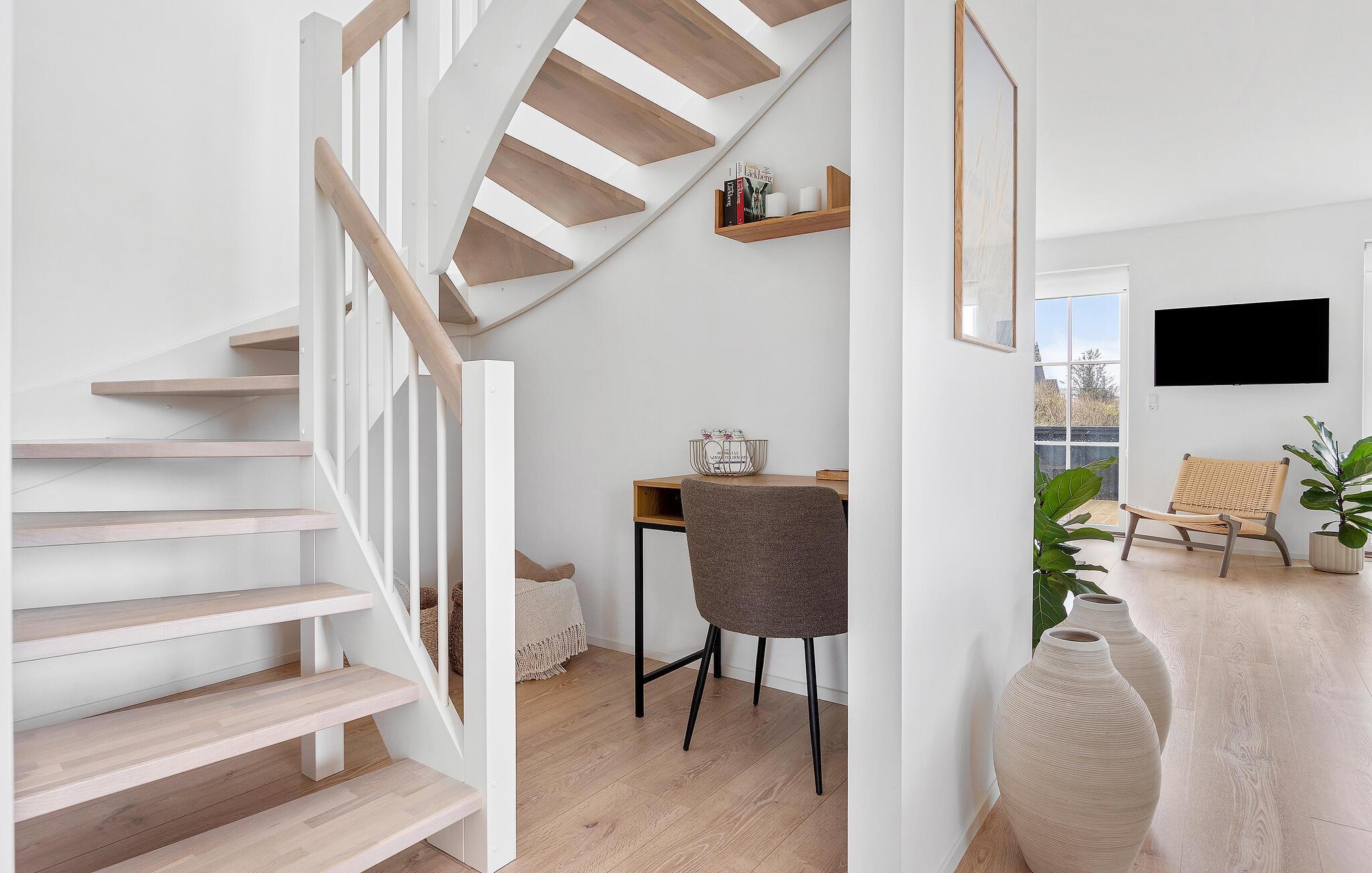 Energivenligt træhus med skønne terrasser nær strand