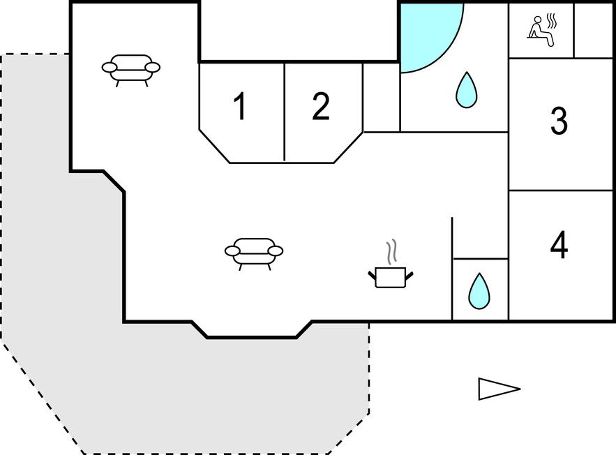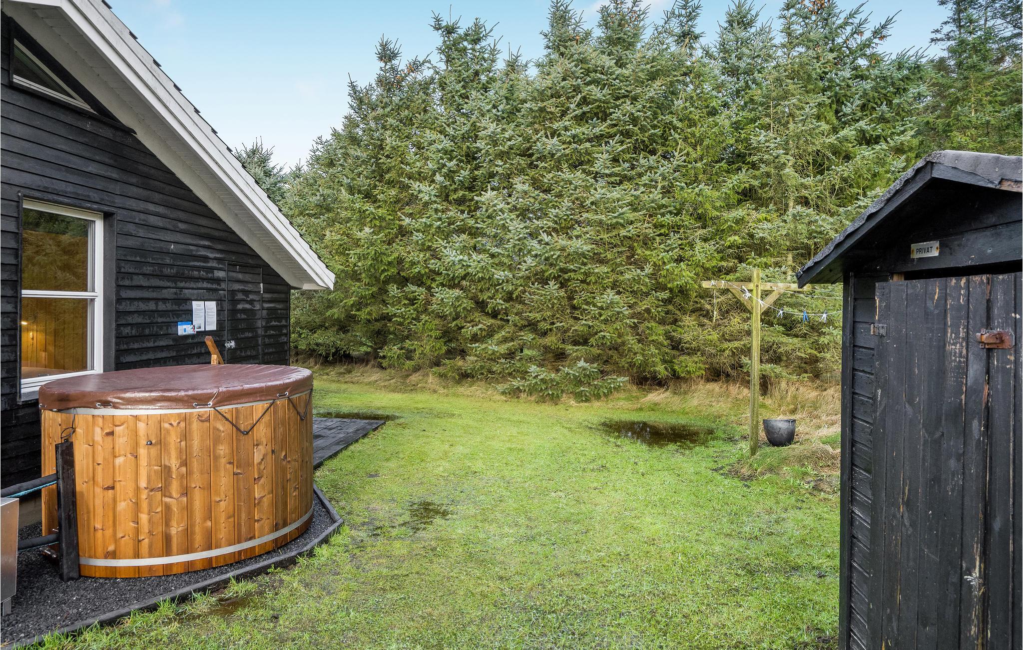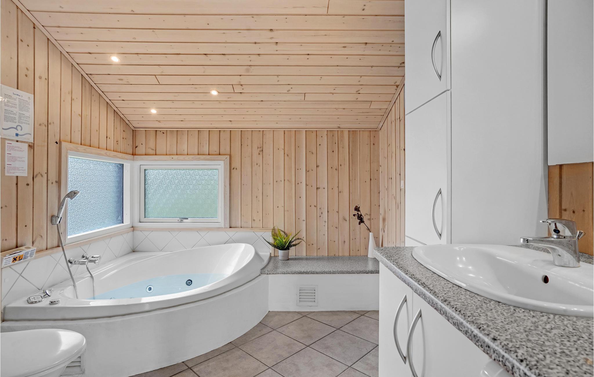 Huset er indrettet med 4 gode soverum og to badeværelser, hvoraf det ene er med adgang til selvforkælelse i spaen eller sauna. Dertil er der et stort køkken/alrum i åben forbindelse med stuen, og de store vinduespartier givet et dejligt lysindfald. Fra opholdsrummet er der adgang til den skønne terrasse, hvor der kan nydes et glas vin i solen, mens børn og barnlige sjæle leger i sandkassen eller spiller bold på plænen. Hvis I trænger til at slappe af og komme helt ned i gear, er det perfekt med en tur i det varme vand i vildmarksbadet.