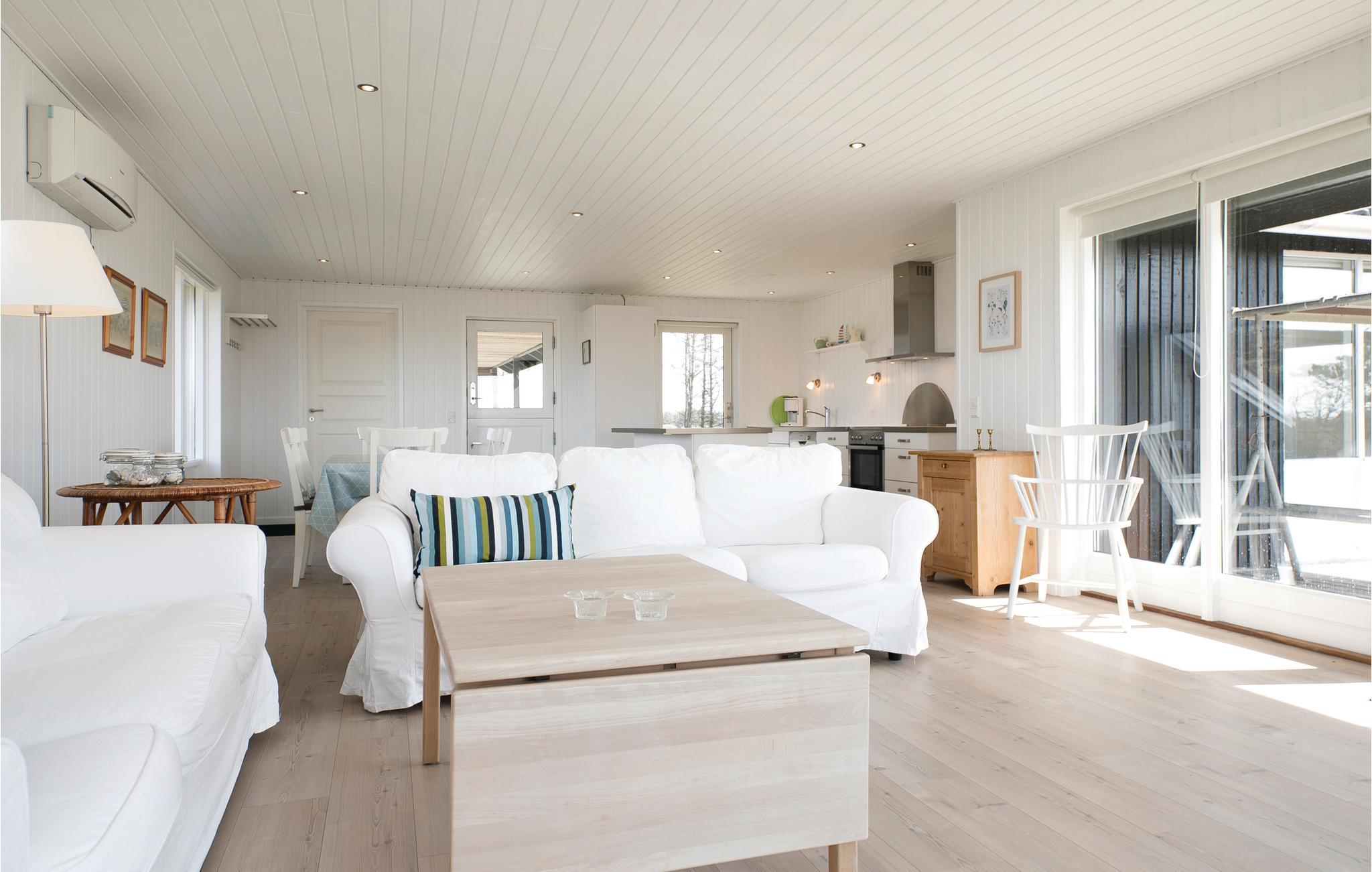 Feriehuset er moderniseret og fremstår lyst og venligt. Det rummer gode soveværelser og en dejlig stue med åbent køkken, så I kan hyggesnakke, mens I laver mad.