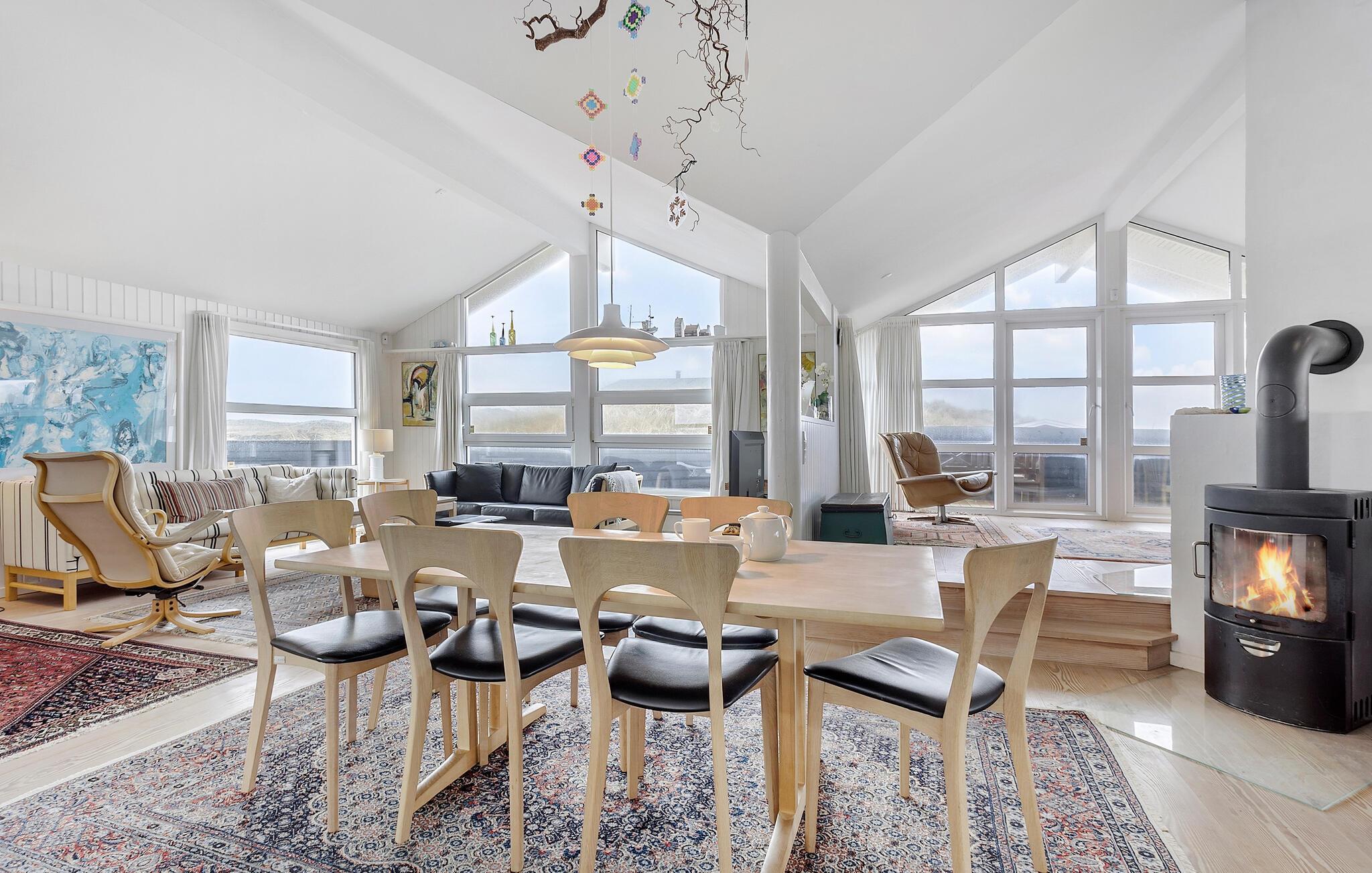 Velkommen til dette attraktive hus, der ligger tæt på stranden og Løkken, og hvor I får alt, I behøver til et vidunderligt ophold med den større familie. Her bor I i idylliske omgivelser i klitterne, og indvendigt fremtræder huset yderst flot med en åben planløsning og store vinduespartier, der giver det indre et lyst og luftigt udtryk og en fremragende udsigt til omgivelserne. Nyd godt af husets gode faciliteter og det veludstyrede køkken, hvor familiens kokke kan tage sig god tid til madlavningen, mens andre tænder op i brændeovnen på en gråvejrsdag og dækker op ved spisebordet. Efter aftensmaden kan I hive brætspillene frem eller sætte jer godt til rette i sofaen med snacks og en god film på tv'et, mens I lægger planer for de kommende dage.