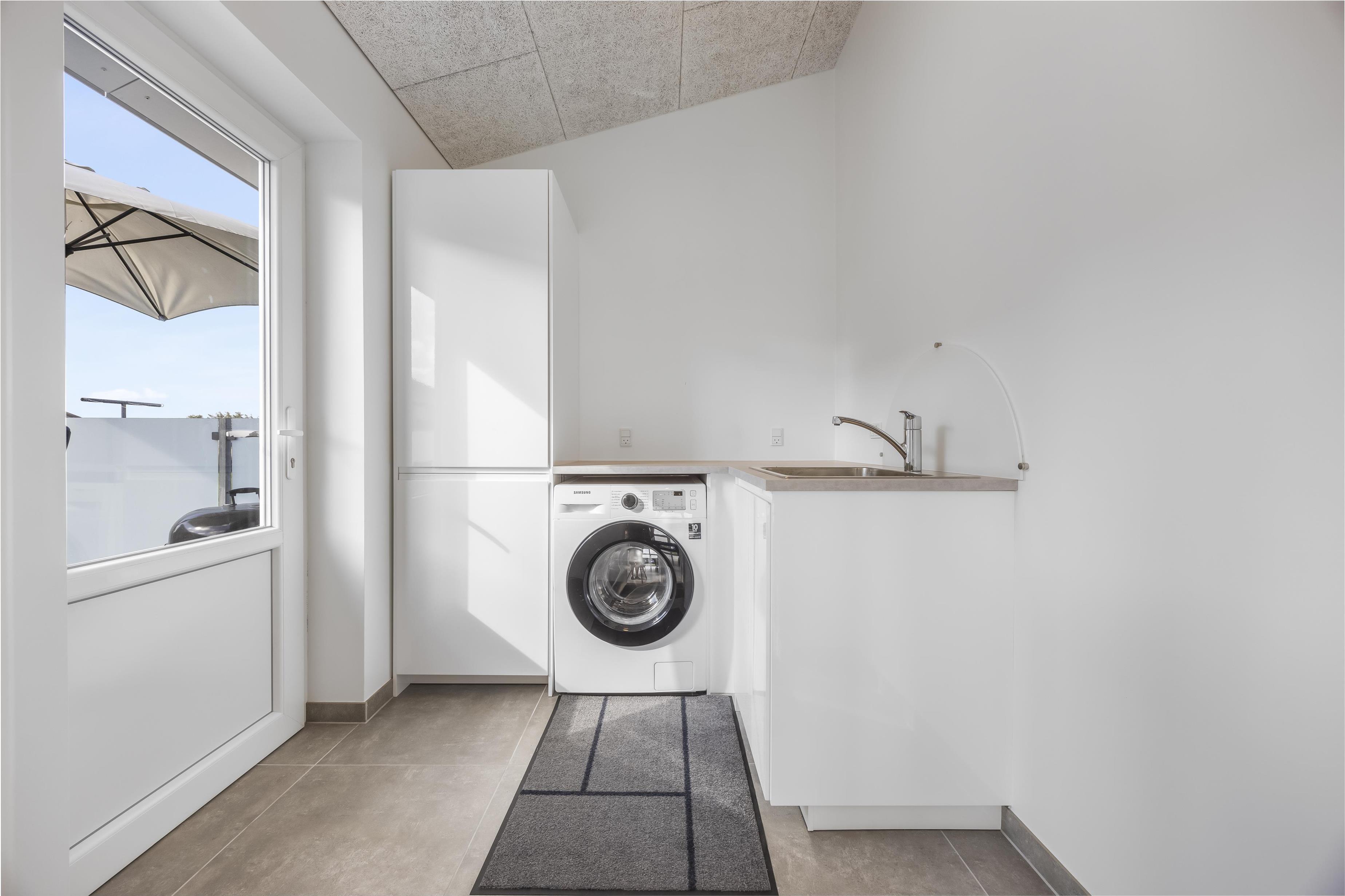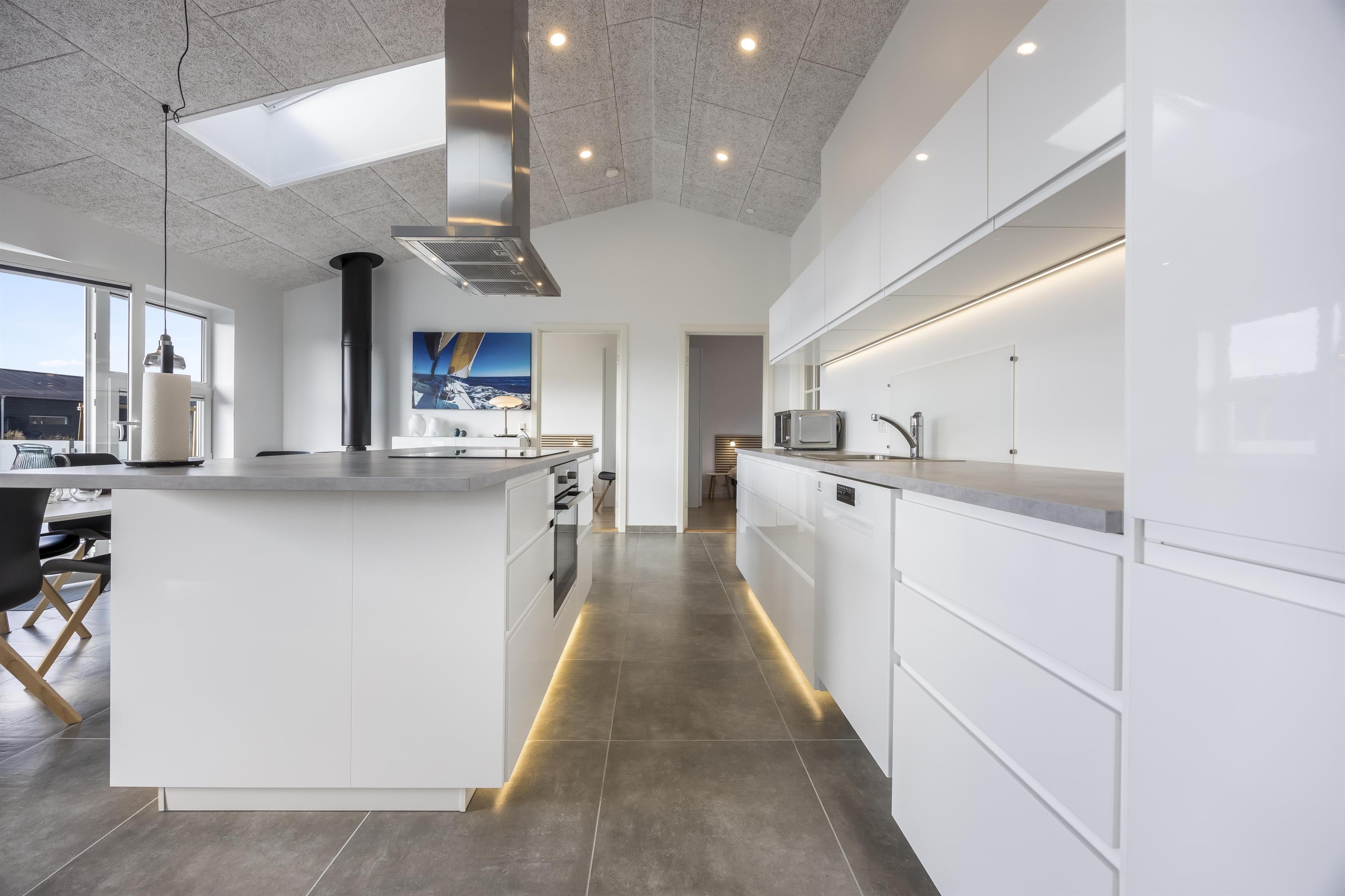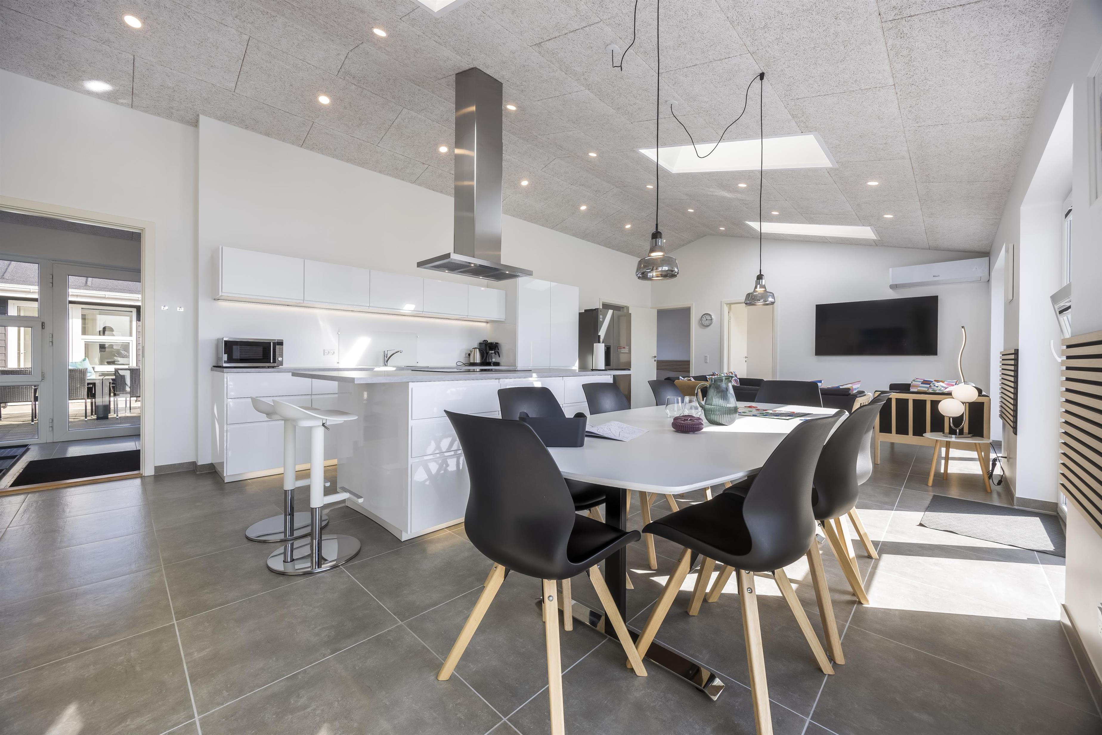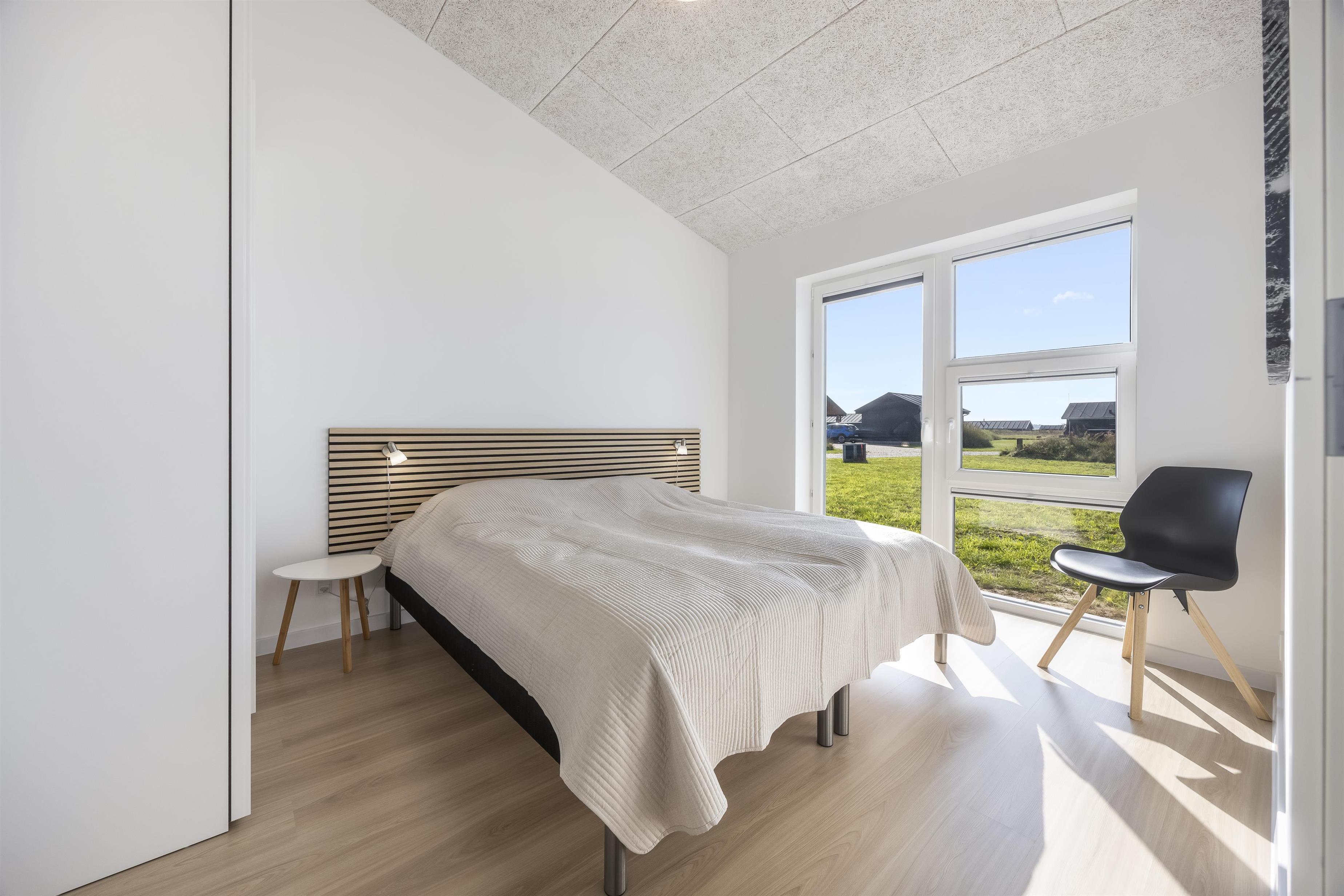 Dette nybyggede feriehus fra 2025 er lyst, rummeligt og indrettet med fokus på komfort. Her finder du et stort opholdsrum med sofagruppe og spiseplads, perfekt til hyggelige stunder efter en dag på stranden. Køkkenet er fuldt udstyret, så det er en fornøjelse at tilberede måltider sammen.