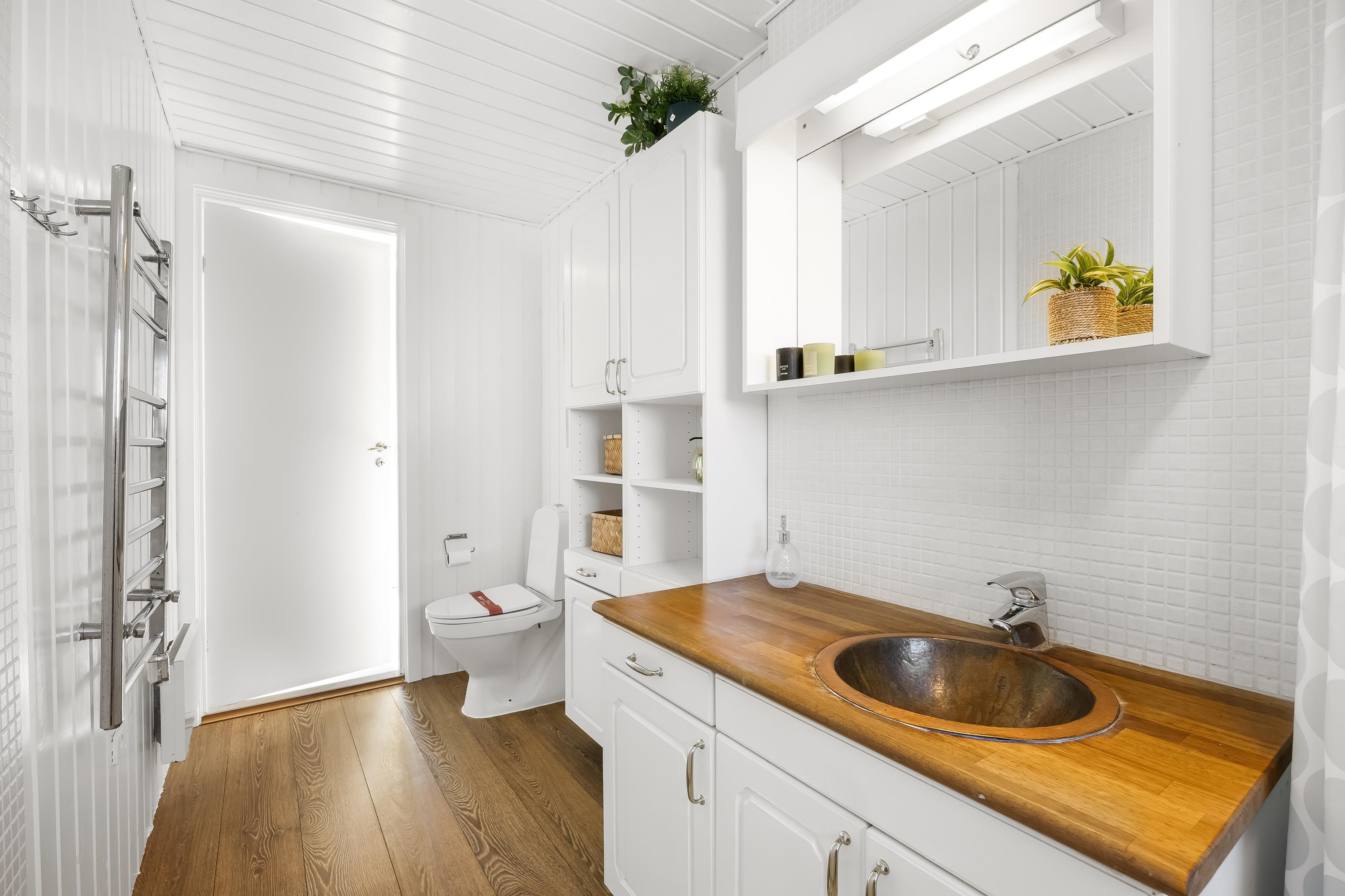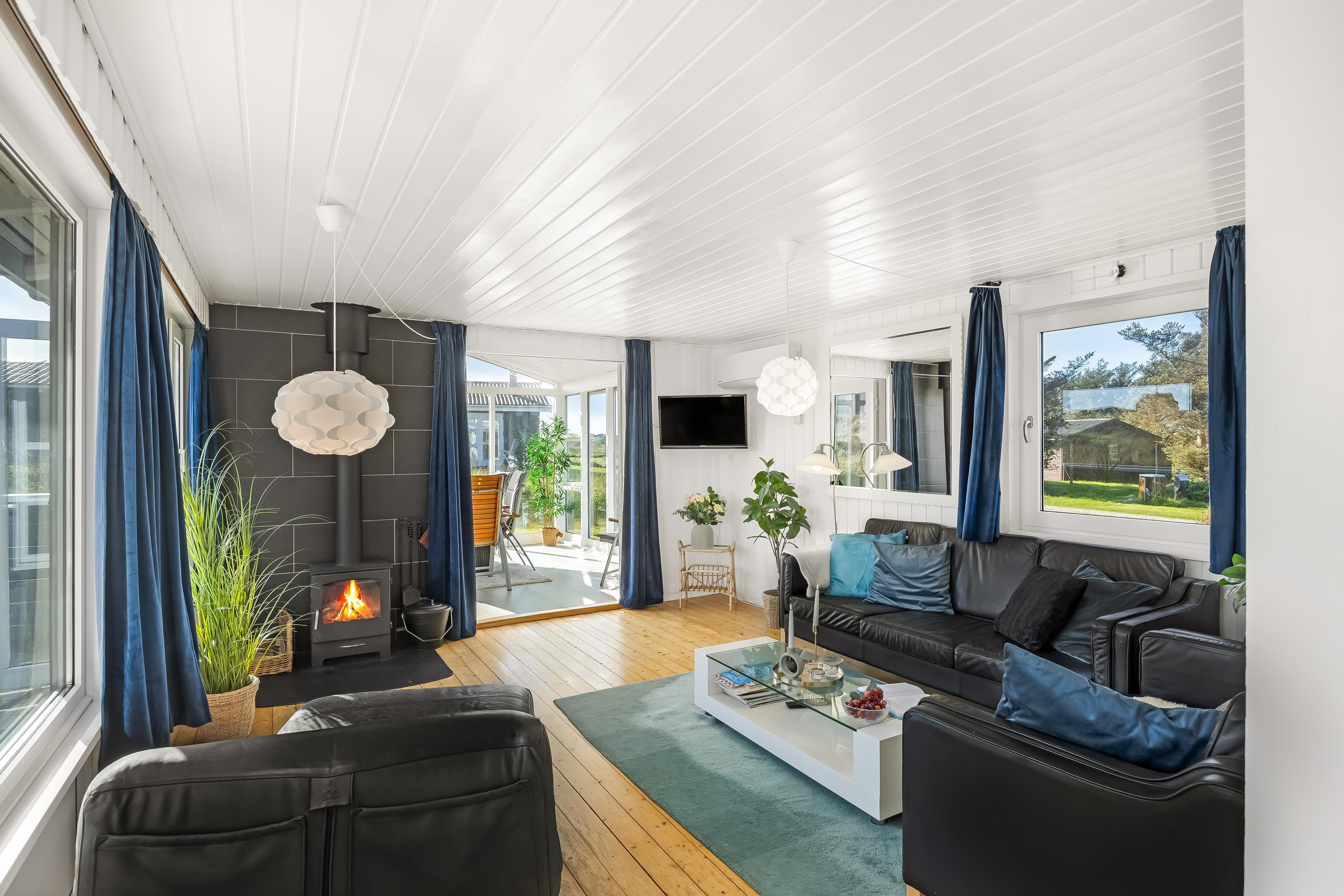 Sommerhuset har en personlig og hyggelig atmosfære, hvor funktionalitet og afslapning går hånd i hånd. Det centrale opholdsrum kombinerer stue og spiseområde, og her er både brændeovn og store vinduespartier, som skaber lys og varme. Den opvarmede havestue fungerer som et ekstra opholdsrum med udsigt over landskabet – perfekt til afslapning i al slags vejr.