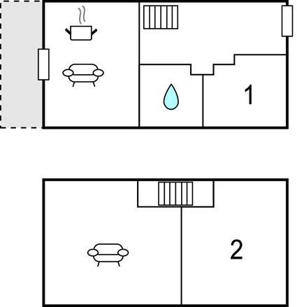 Opholdsstue/køkken - 2 Sovepladser. (Sofa, madras eller lignende).