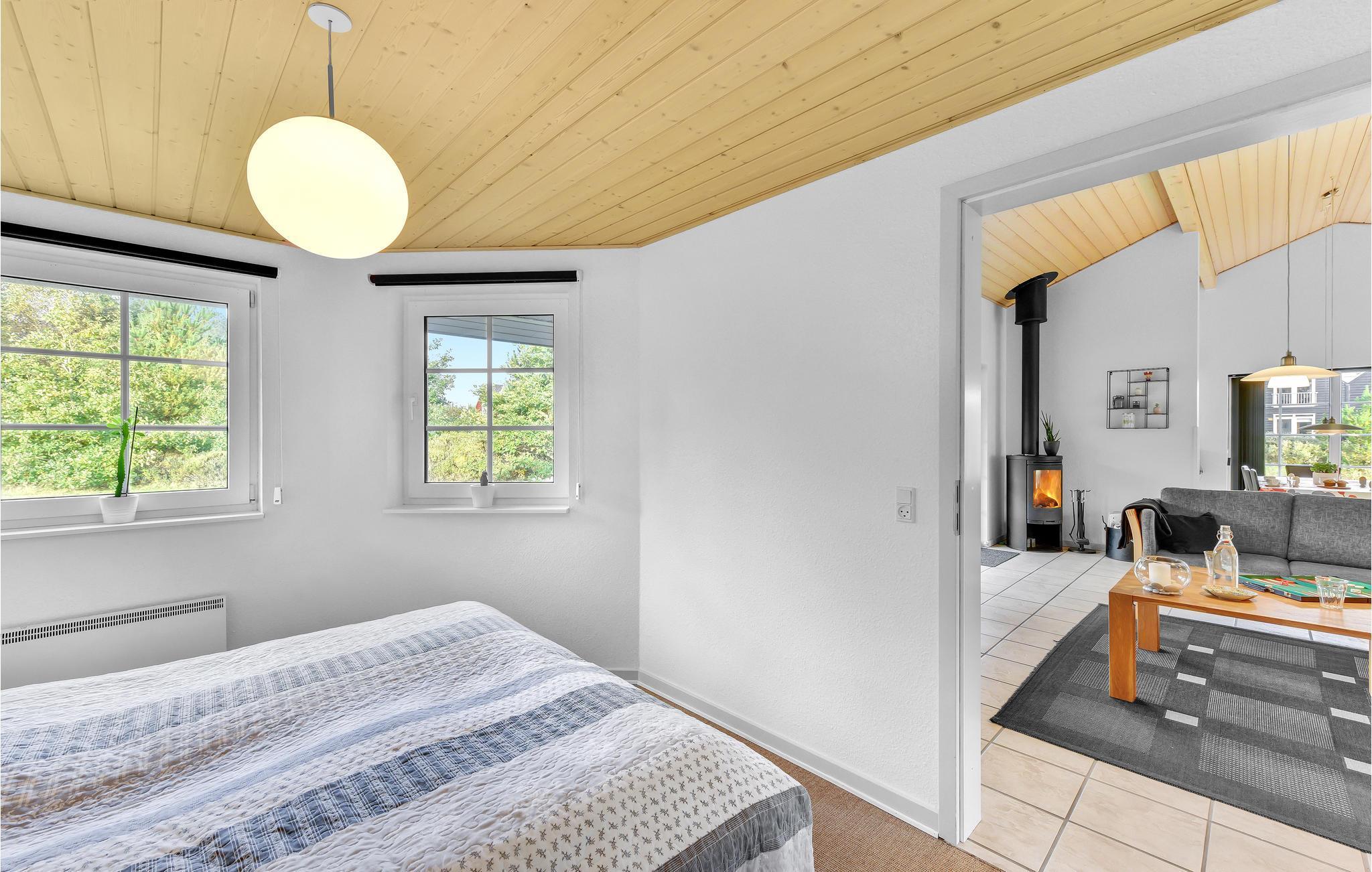 Højt til loftet, masser af lys og god plads. Det er hovedingredienserne i dette sommerhus, hvor I får opskriften på en god ferie. Børnene kan slå sig ned i deres egen hule på hemsen, mens hele familien kan samles til brætspil i den store stue, hvor brændeovnens knitrende ild garanterer hyggen. Udendørs har I terrasse og stor have til leg og spil.
