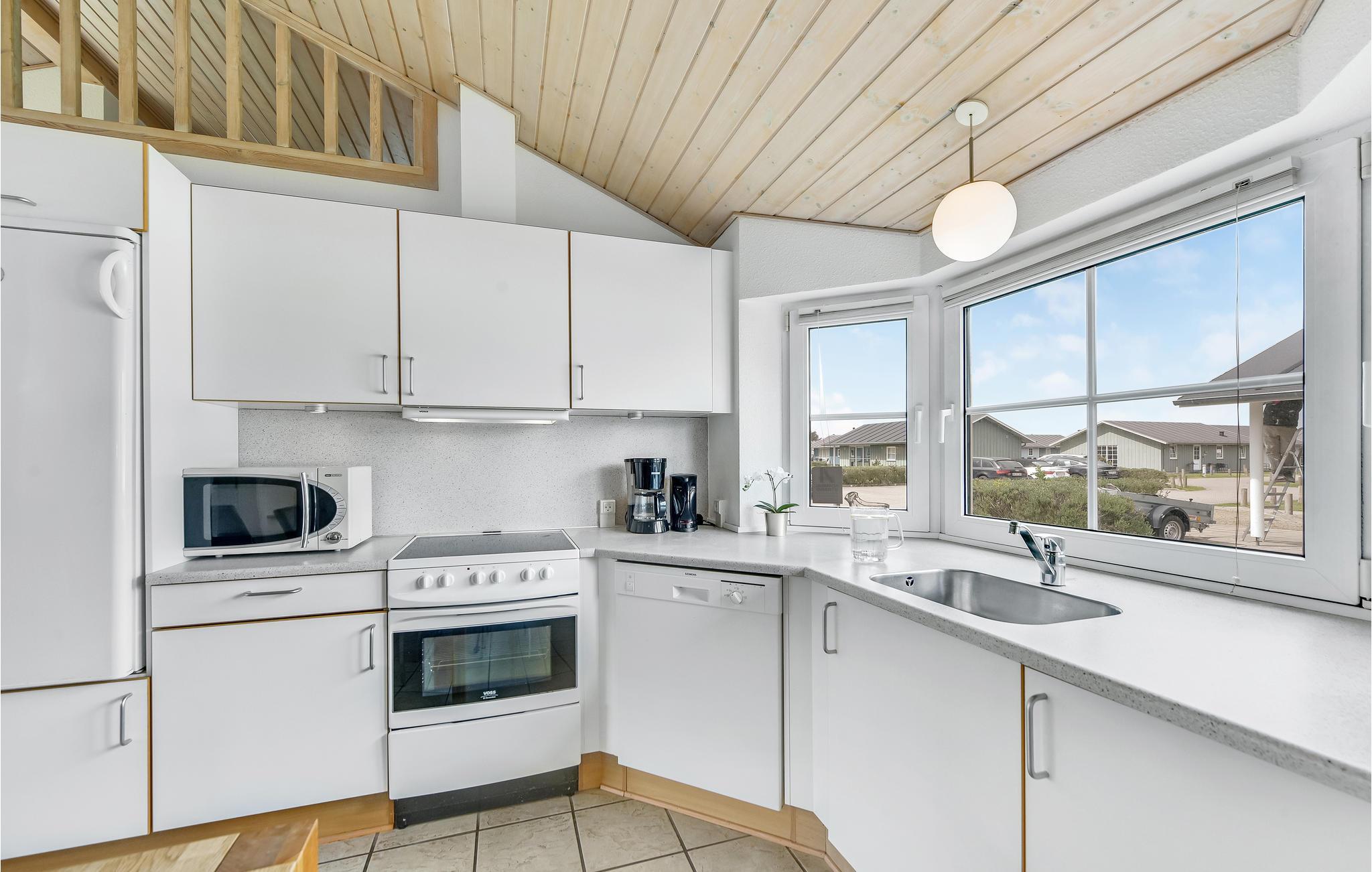 Huset har et flot og rummeligt køkken og stue med brændeovn og udgang til en delvist overdækket terrasse. I det skønne badeværelse er der jacuzzi, hvor I kan slappe af efter en frisk gåtur ved havet. Der er flere gode aktivitetsmuligheder i området, herunder mountainbikestier, vandrestier og det fascinerende Vesterhav er mindre end 15 minutters kørsel væk.