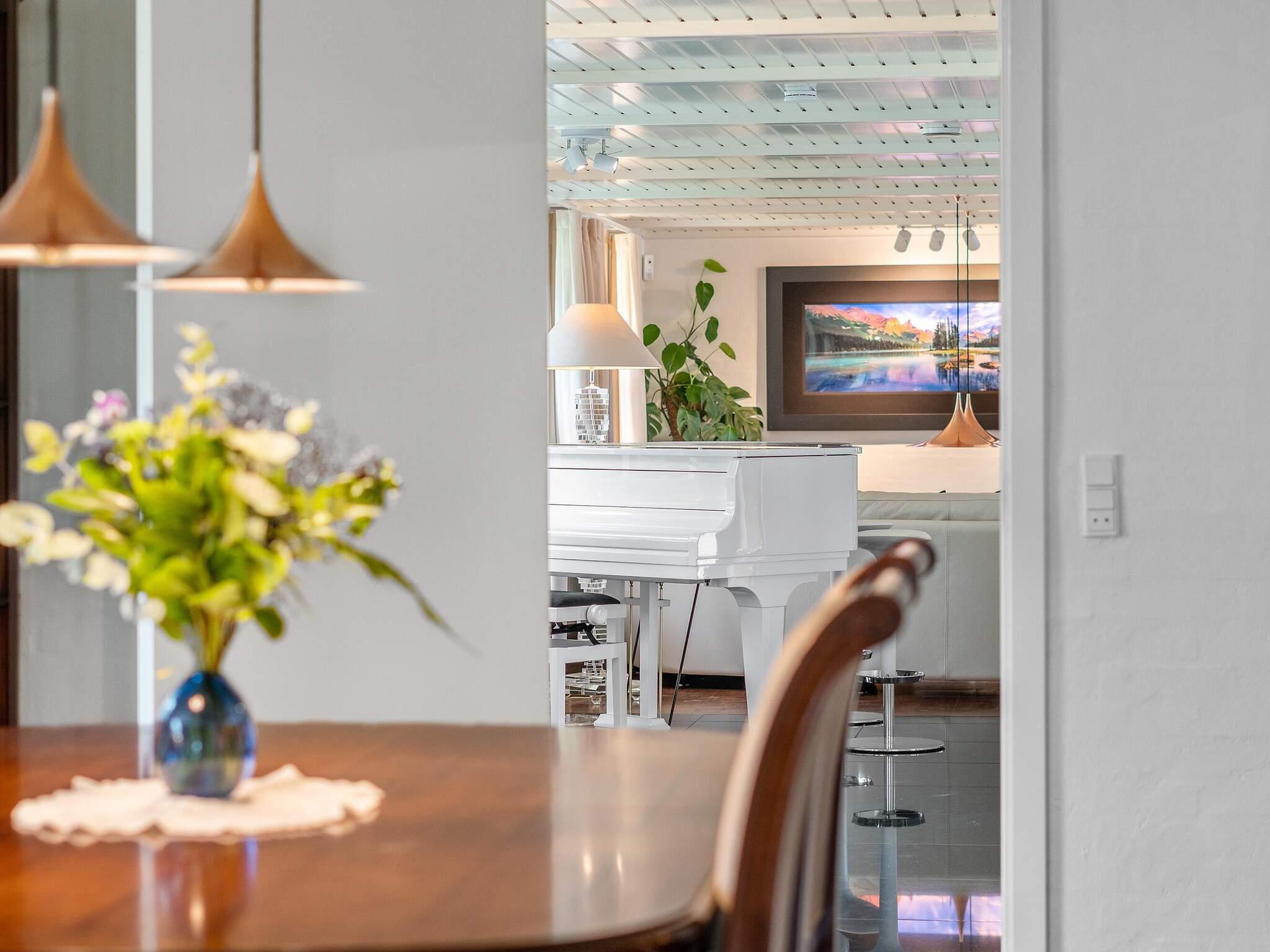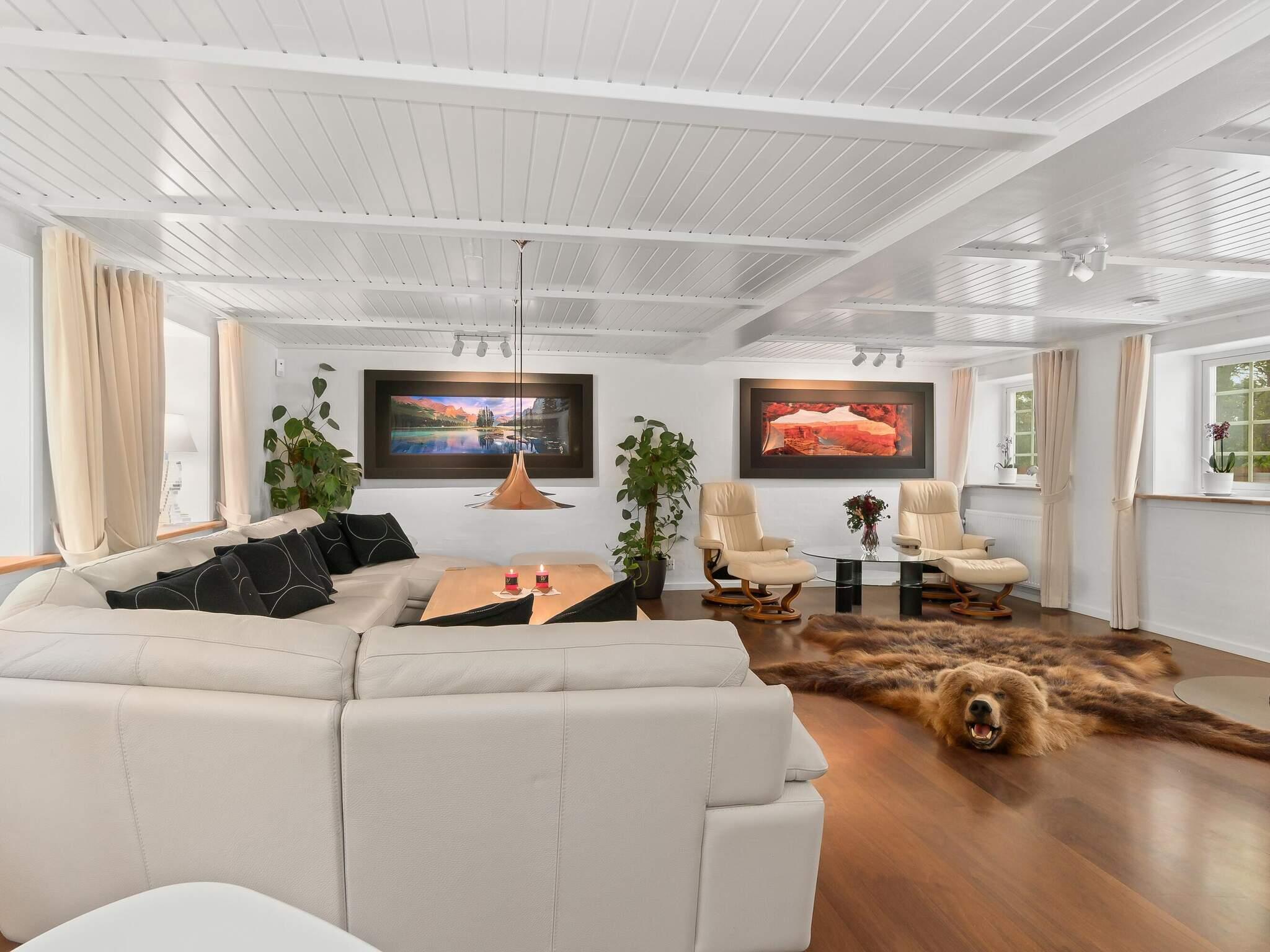 Hele hovedhuset har gulvvarme. Indeklimaet er gunstigt takket være varmegenvindingssystemet, som forhindrer træk. Hovedhuset har både stue og spisestue med spiseplads, stole og indbygget tv. Stuen har store vinduespartier, der slipper masser af lys ind og samtidig giver udgang til terrassen. Der er tre brændeovne og seks tv.