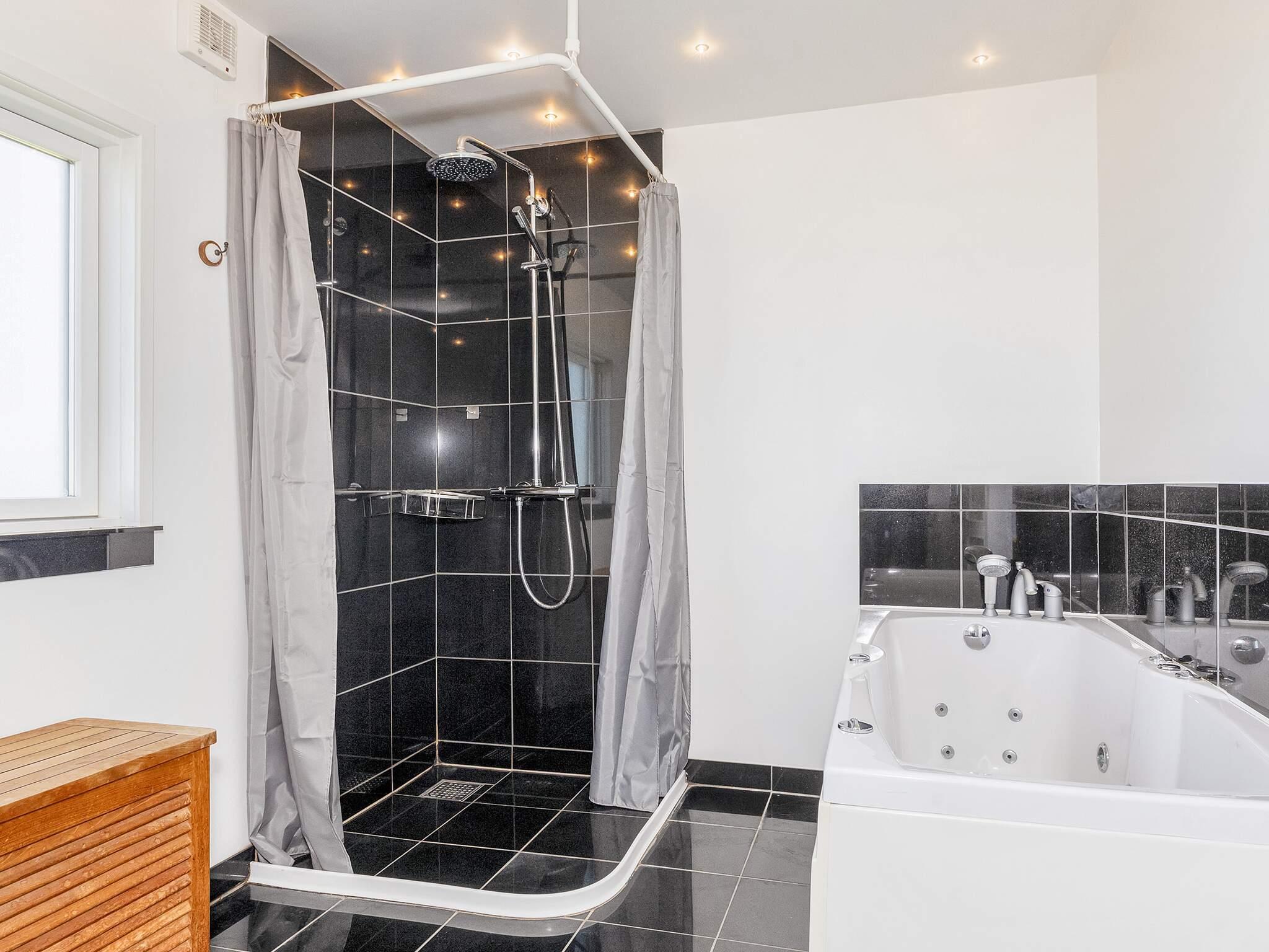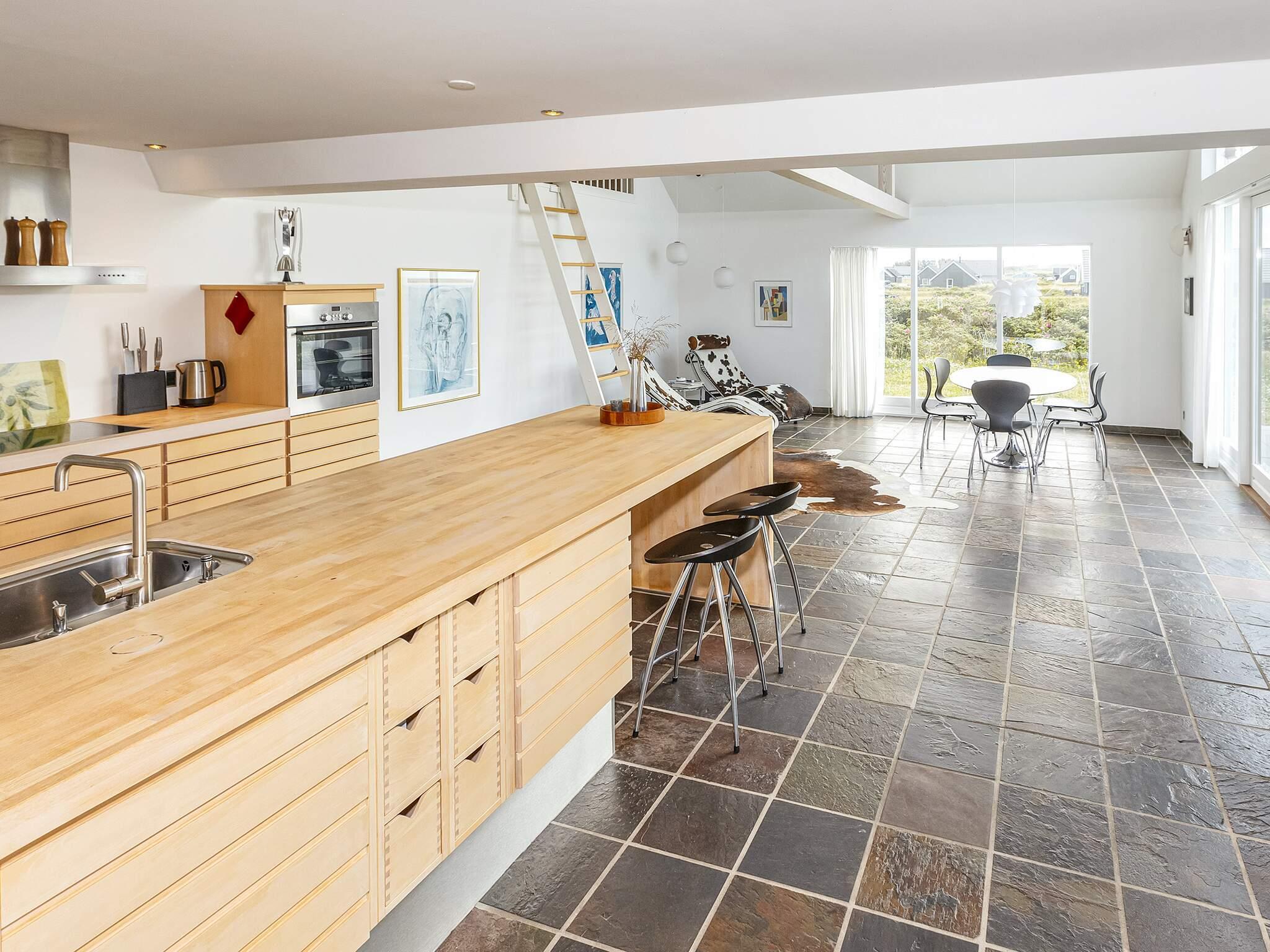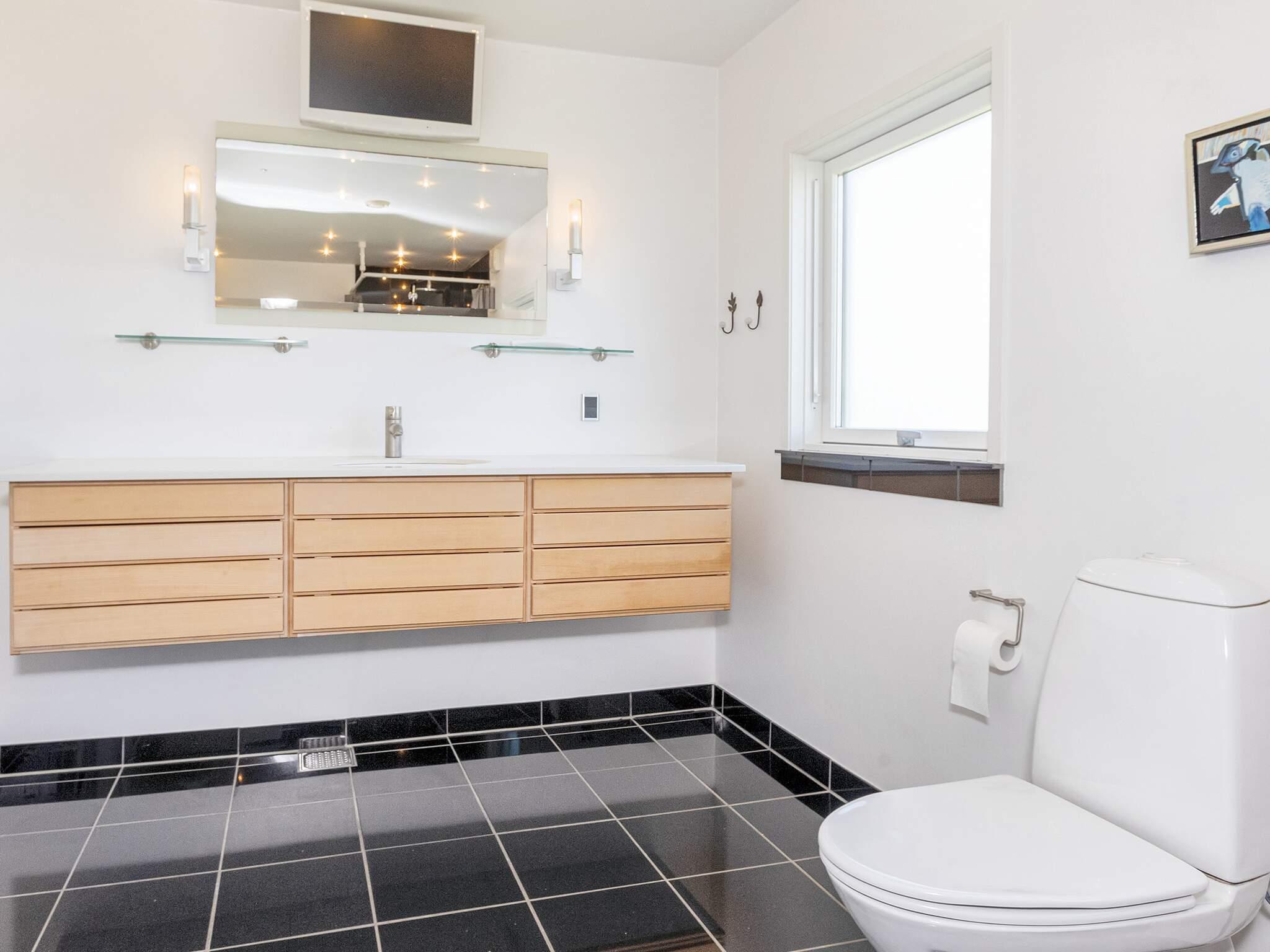 Den ene stue samt opholdsrum ligger i åben forbindelse med køkkenet. Det giver rig mulighed for en fælles ferie. Har man brug for ro, findes der også en ekstra stue på 1. sal. I huset findes også TV med Chromecast. Sommerhuset er bl.a. udstyret med to energibesparende varmepumper, vaskemaskine, tørretumbler og frysekapacitet på 50 liter. Husets skønne badeværelse indeholder dejligt spabad til 1 person. Badeværelset har gulvvarme.