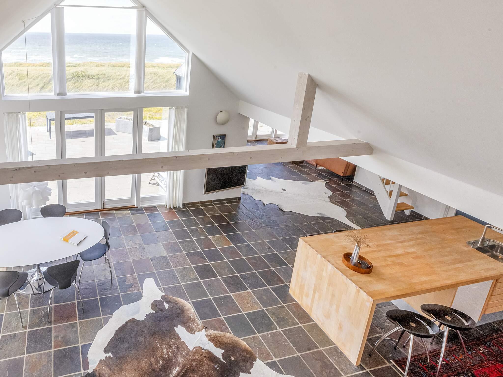 Sommerhuset fremstår med en lys og smagfuld indretning. På 1. sal findes bl.a. ekstra opholdsstue, hvorfra der især er flot udsigt over vandet. Her findes også 2 sovepladser i dobbeltseng for enden af stuen. Det ene soveværelse er indrettet på en stor og rummelig hems, som er adskilt fra resten af huset med en glasvæg med glasdør. Dermed bevares den skønne udsigt fra værelset. Et hus som rigtig mange gæster vender tilbage til år efter år.