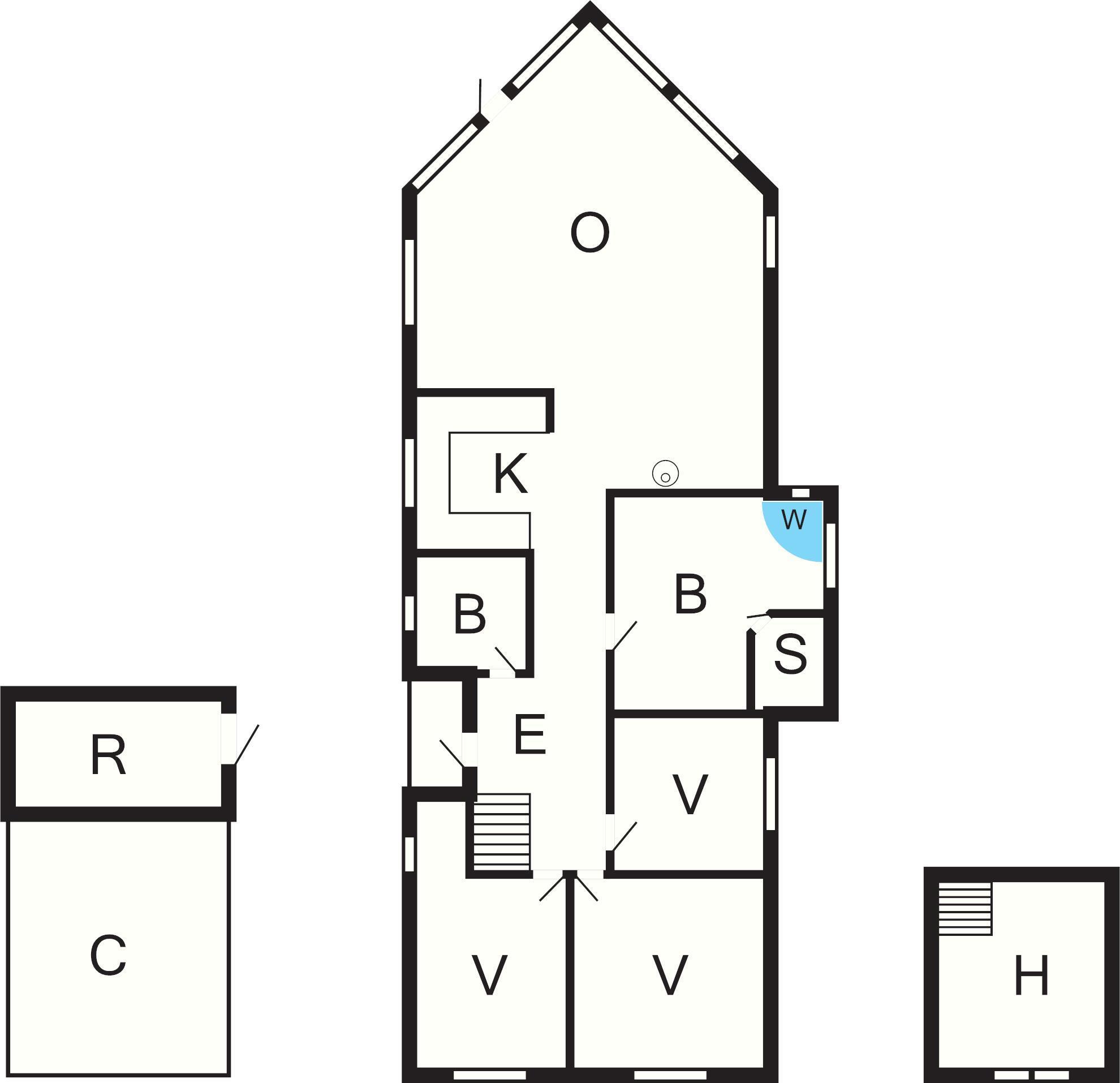 Huset er lyst og har adgang til en dejlig hems med god loftshøjde, hvor to af sovepladserne er placeret. To af soveområderne egner sig bedst til større børn (4-11 år). Ikke tilgængelig for udlejning til ungdomsgrupper.