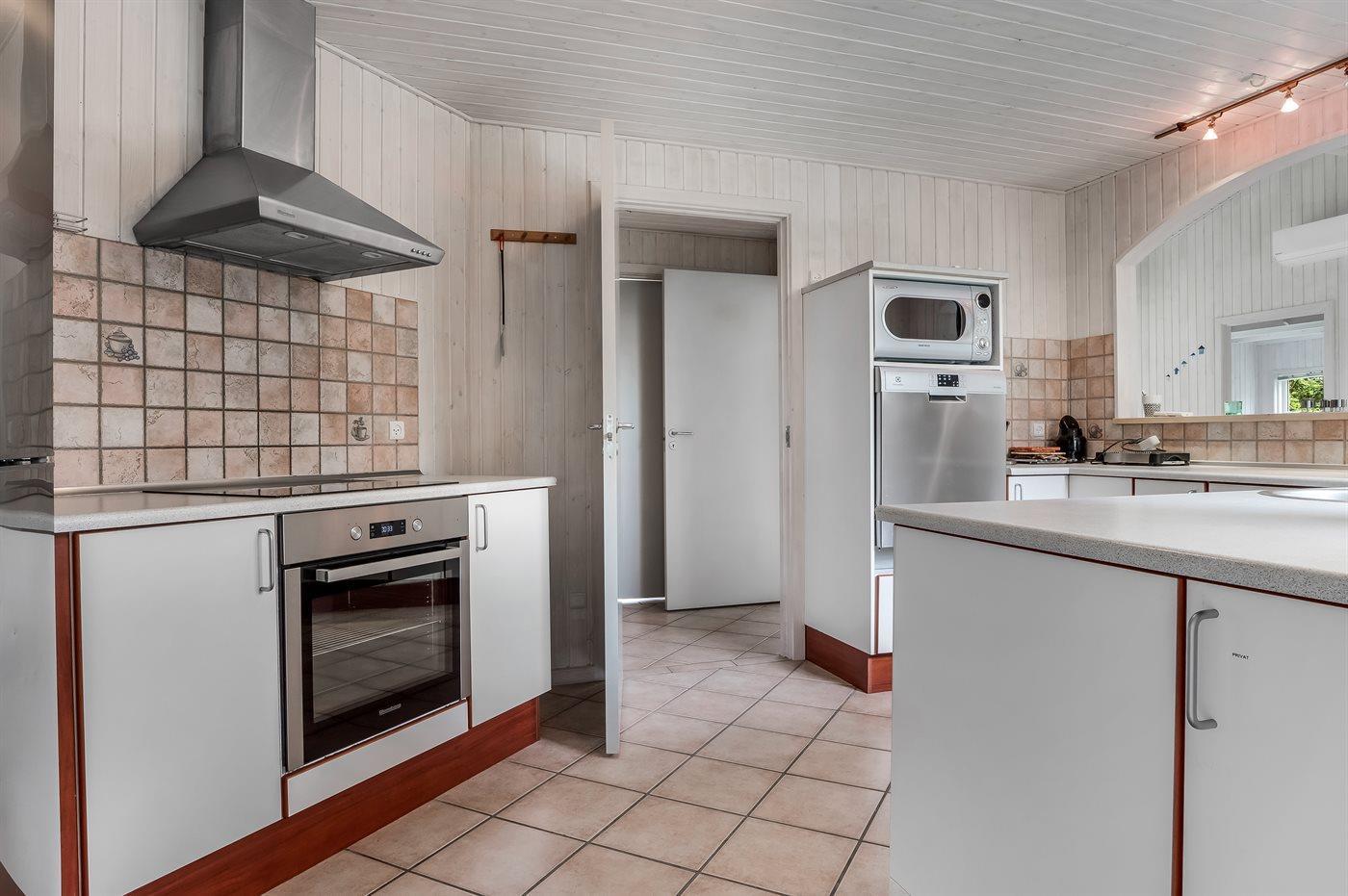 Køkkenet er udstyret med 1 køleskab. Der er 4 keramiske kogeplader, varmluftovn samt opvaskemaskine.