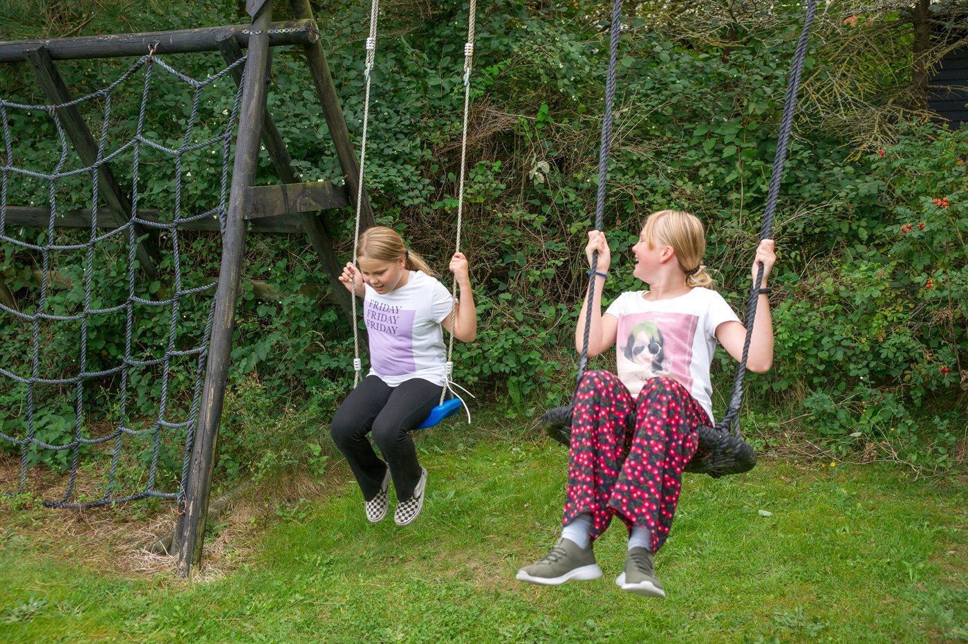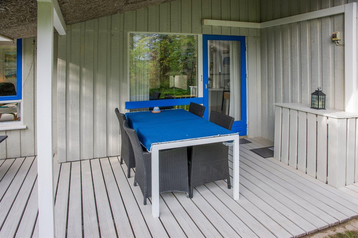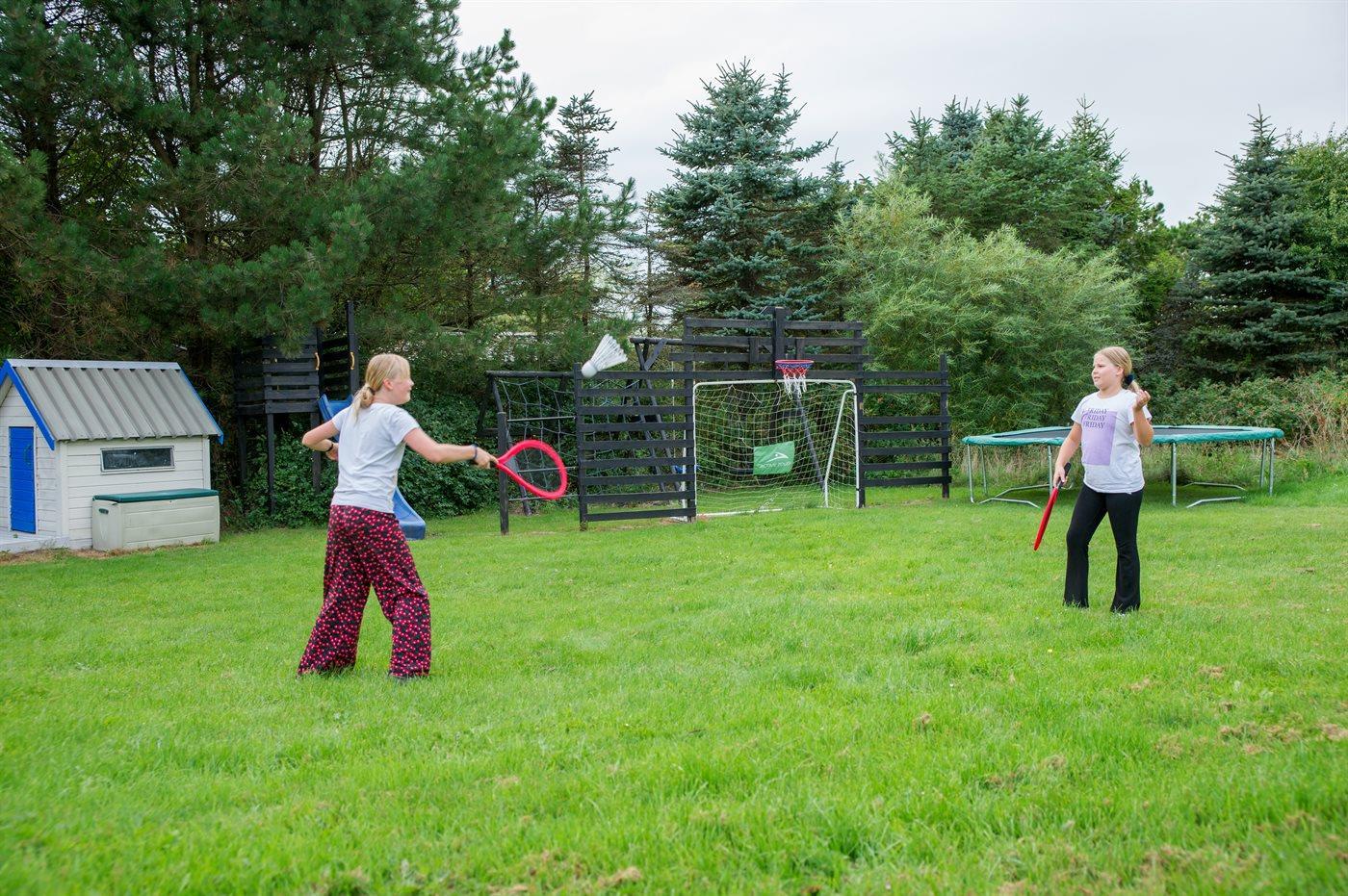 Ferieboligen er beliggende på en 2900 m² stor naturgrund. Der er 900 m til havet. Nærmeste forretning er beliggende i en afstand af 700 m. Til ferieboligen hører 75 m² terrasseareal. Desuden er der 25 m² overdækket terrasse. Der er redskabsrum. Gynge. Trampolin. Legetårn. Rutchebane. Fodboldmål. Grill til rådighed. Der er installeret stik til opladning af elbil. Parkering ved ferieboligen.