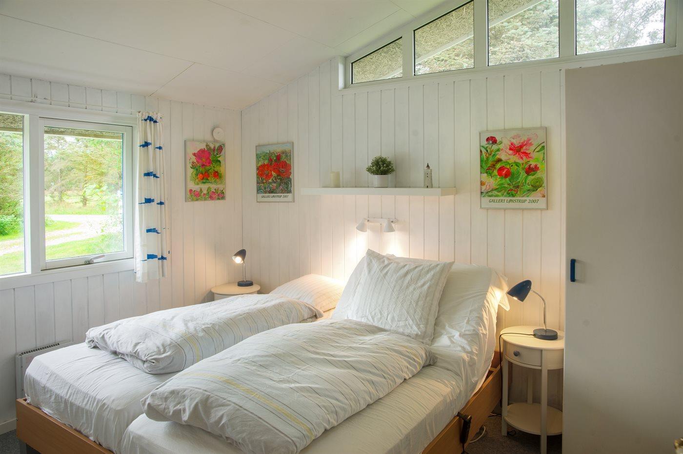 Der er i alt 4 soveværelser. Sovepladserne fordeler sig på: 6 sovepladser i dobbeltsenge. 4 sovepladser i køjesenge. Derudover er der 1 stk. barneseng.