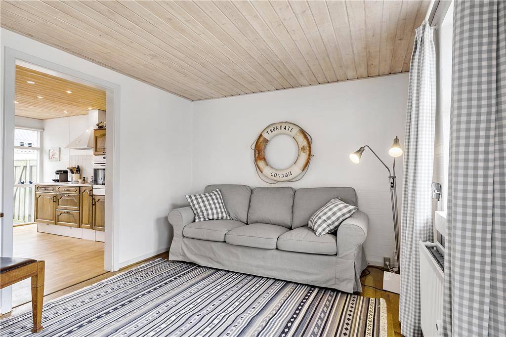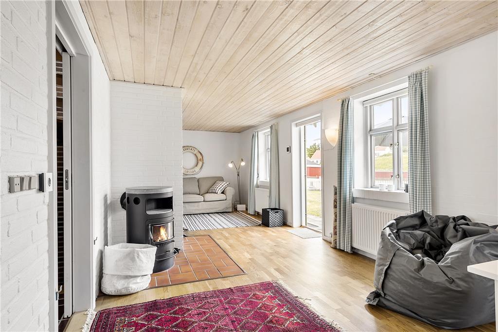 Sommerhuset - et tidligere helårshus, som nu anvendes som fritidsbolig - er indrettet i 3 etager. I kælderen har du et større rum, hvor der er god plads og en dobbeltseng. Hertil et bruserum samt et praktisk viktualierum/bryggers, hvor du også finder husets vaskemaskine og tørretumbler. I stueetagen er der - ud over husets indgang og adgang til den helt lukkede og private gårdhave - et dejligt opholdsrum med brændeovn og et veludstyret køkken, med alt du skal bruge til feriemadlavningen, og et dejligt, og moderne indrettet, badeværelse.. På 1. sal findes de sidste 2 soverum, som ligeledes har hver en dobbeltseng. Alt er særdeles velholdt. Der er kabel-TV og Wi-fi i huset til fri afbenyttelse.