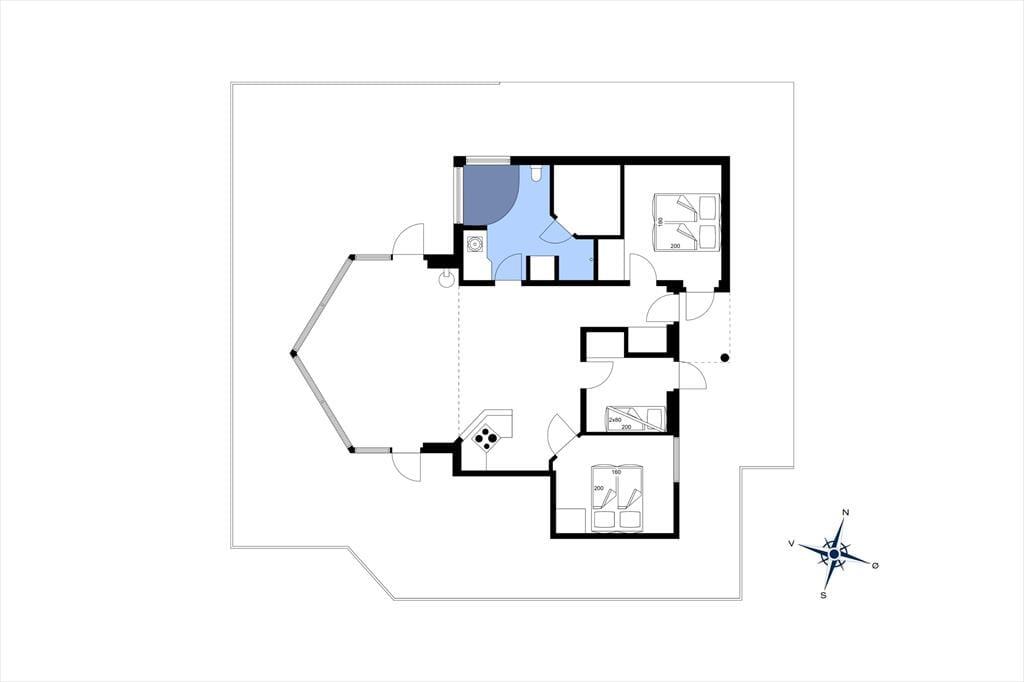 Sommerhuset er velindrettet med moderne og funktionelle møbler. Det veludstyrede køkken ligger i åben forbindelse med stuen, og også herfra kan havudsigten nydes mens maden tilberedes. Huset har 3 soveværelser, to med dobbeltsenge og et med en køjeseng. Der er store panoramavinduer som giver et fantastisk lysindfald i hele sommerhuset.