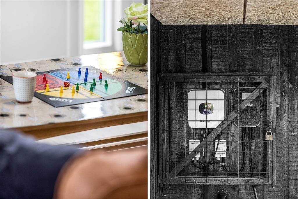 Et af de store plusser ved huset er solcellerne, som på solrige dage producerer så meget strøm, at det dækker hele husets energiforbrug – det vil sige gratis strøm til gæsterne, når solen skinner. Det kombineres med varmepumpe, hvilket både er godt for miljøet og for pengepungen.