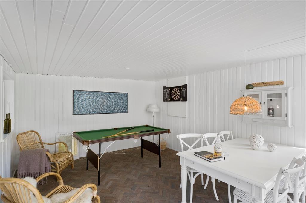 Når vejret er mildt eller ligefrem sommerligt, fungerer lysthuset som den perfekte overgang mellem ude og inde. Her kan I spille pool og dart eller læse en god bog, mens I nyder nærheden til haven. Og er brisen lidt for kølig til at sidde helt ude i det fri, er lysthuset et skønt opholdssted på lyse sommeraftener.