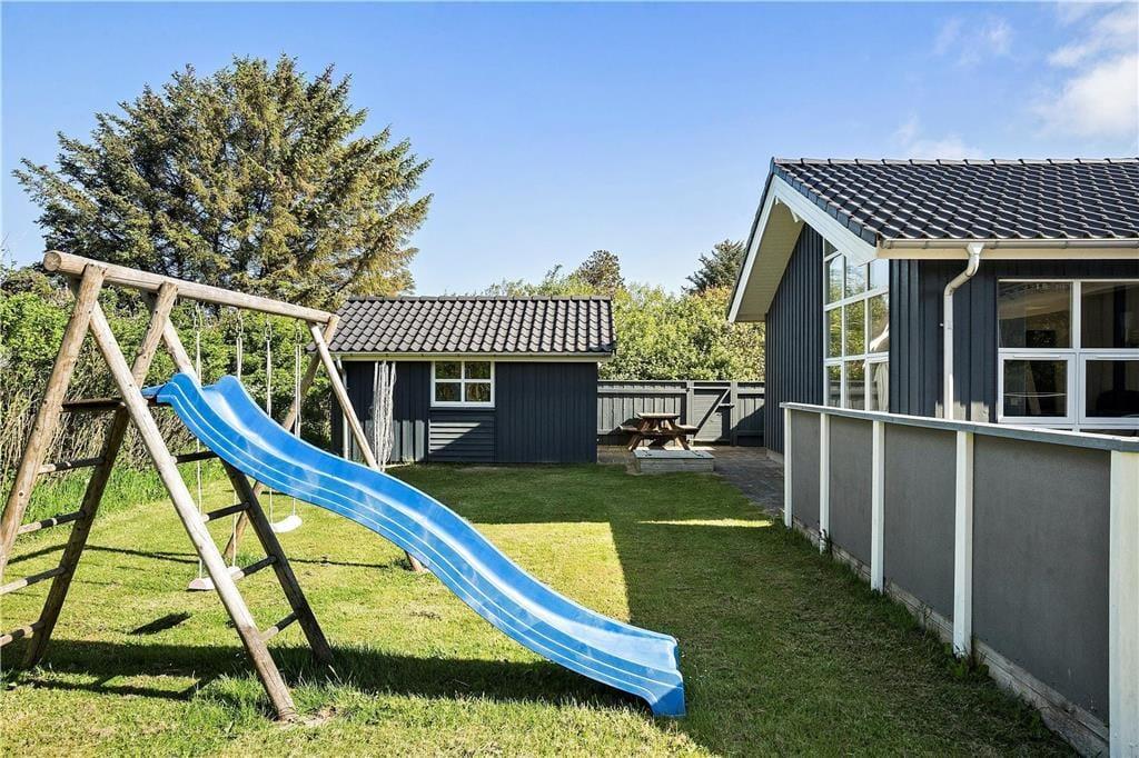 På kølige dage er det nemt at få tiden til at gå inden døre med spabad, saunature og hygge nær brændeovnen. Men så snart solen skinner og temperaturen er sommerlig, er det oplagt at flytte ferielivet ud under åben himmel. Rundt om huset er der anlagt flere terrasser, så I kan slå jer ned lige der, hvor solforholdene er optimale. Er der små børn med på ferie, kan de gynge og lege i sandkassen, mens legebørn i alle aldre kan slå sig løs på græsplænen med et spil vikingespil eller andre fælles haveaktiviteter.