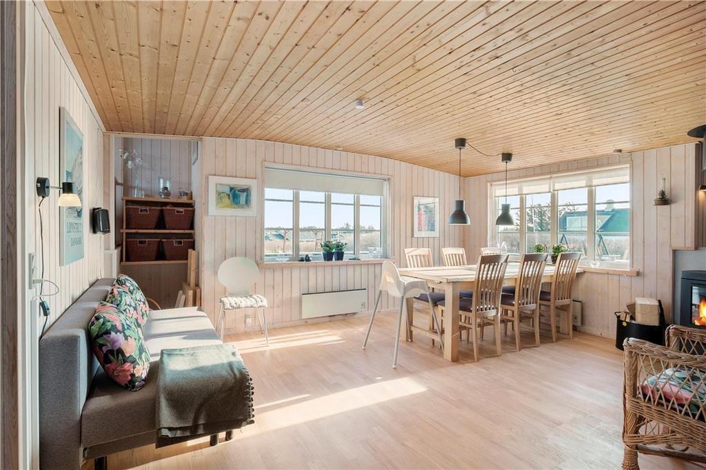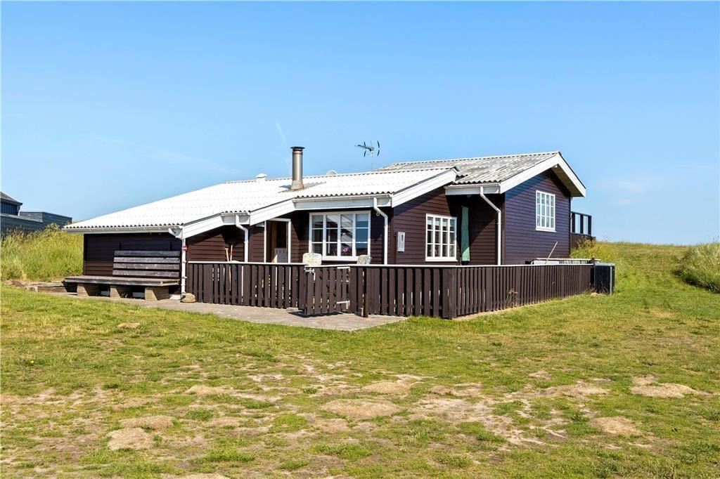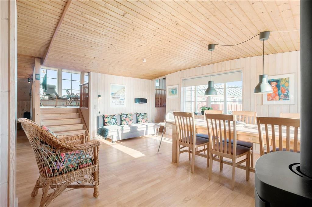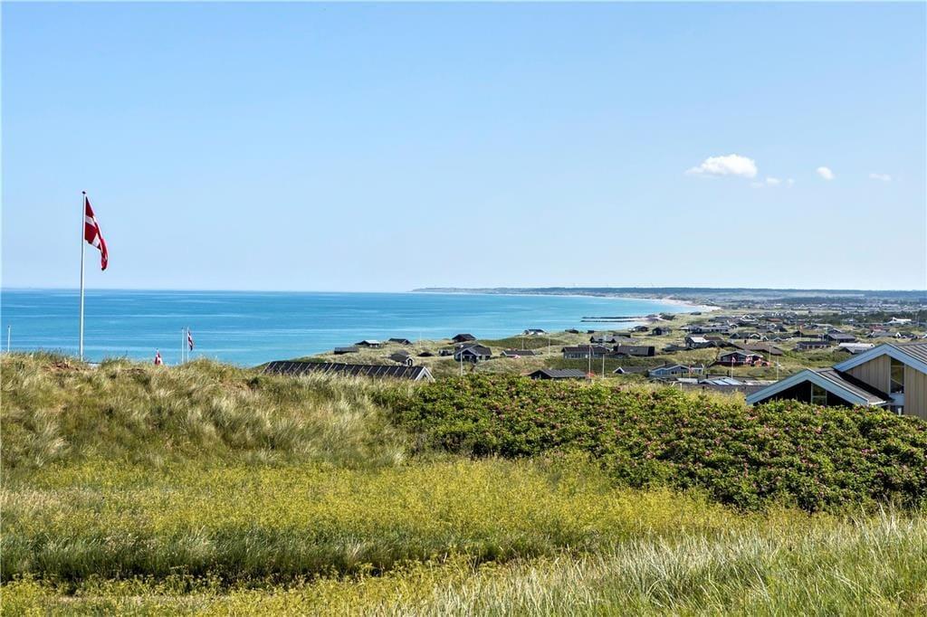 Dette dejlige sommerhus ligger højt i kystlandskabet tæt på de stejle klinter, der troner over Lønstrup Strand. Fra stuen såvel som terrassen har I udsigt til Vesterhavet, og det er et særdeles smukt syn, uanset om efterårsblæsten rusker op i bølgerne, eller sommersolen står højt på himmelen over det stille vand.