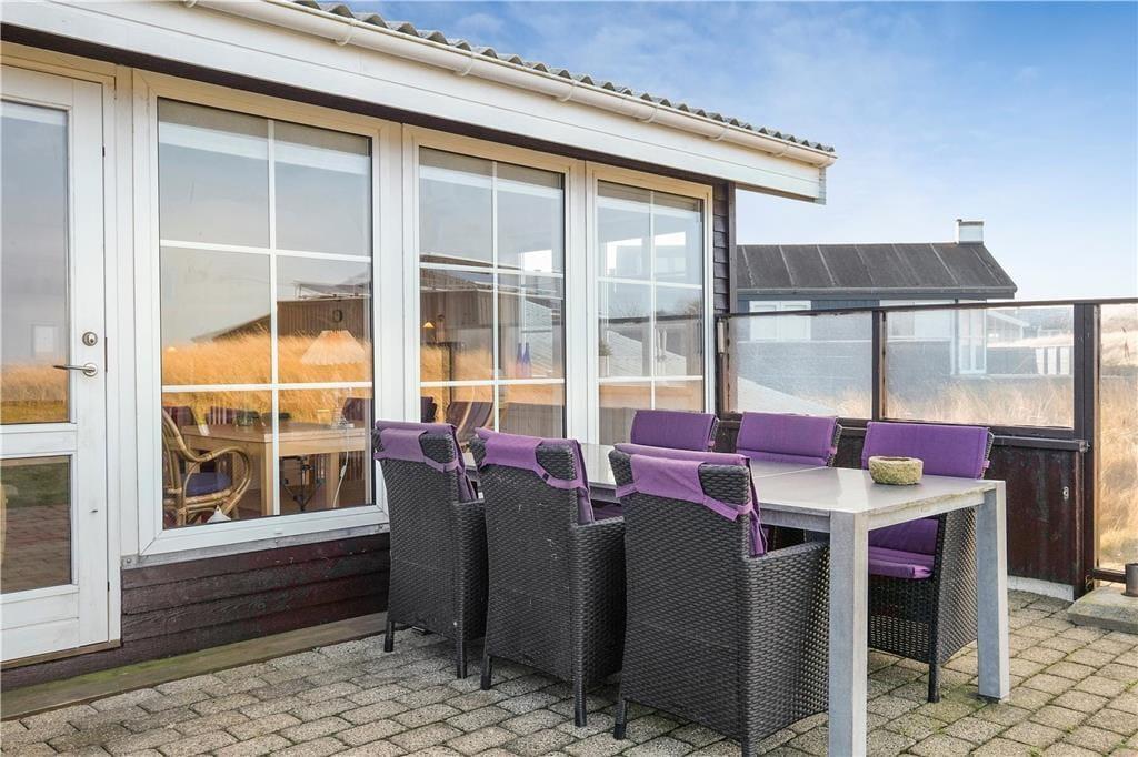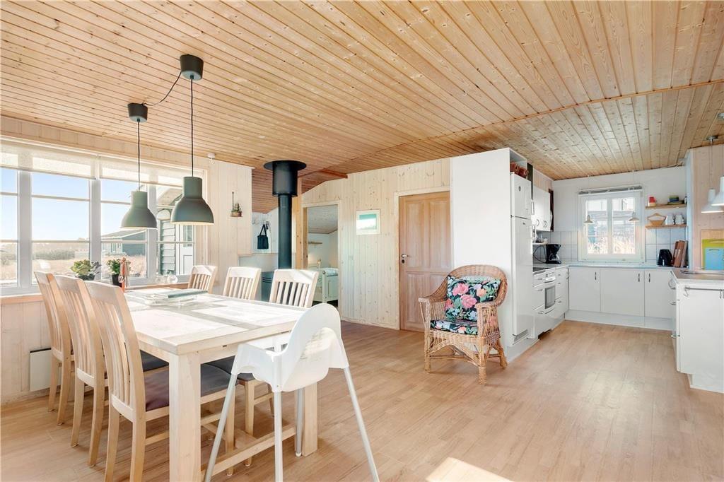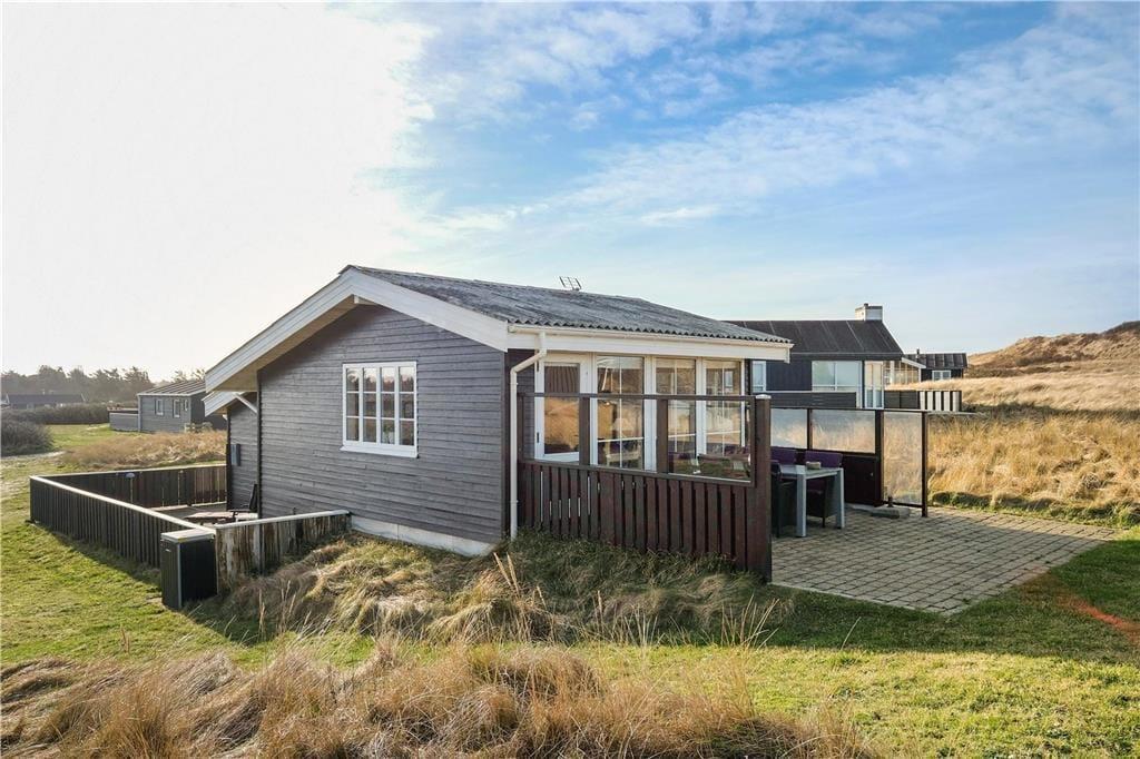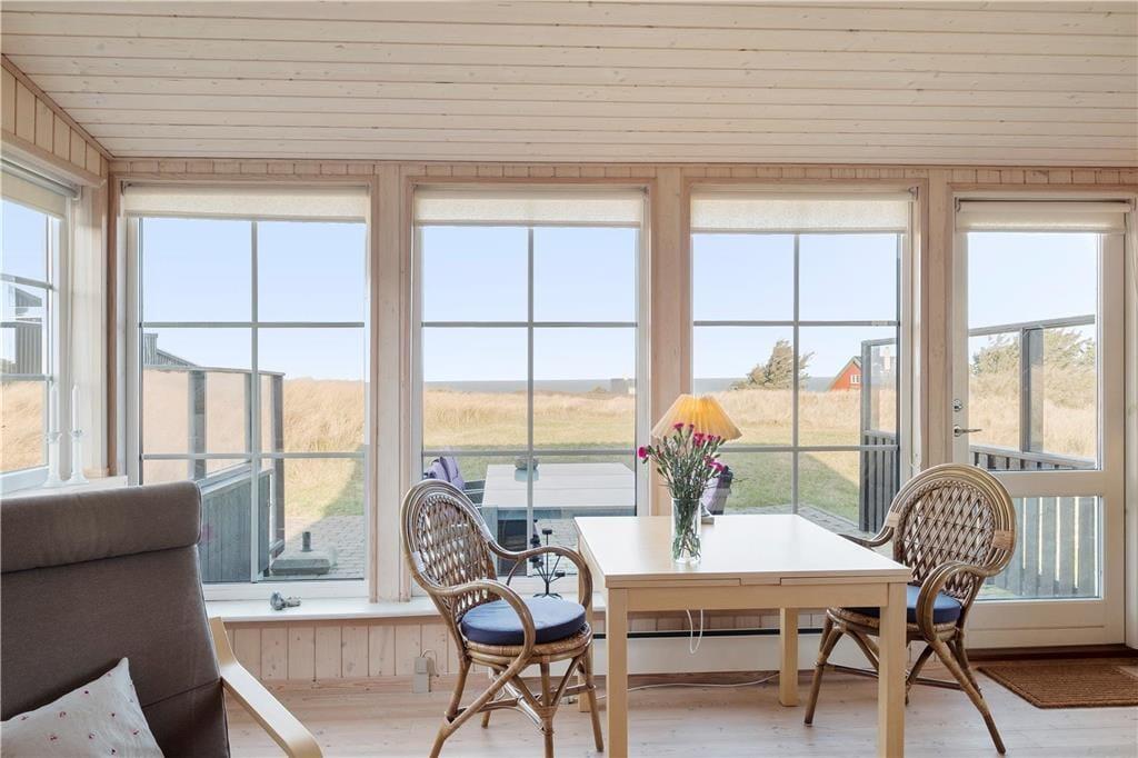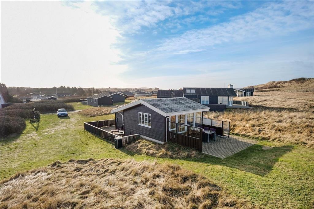 Dette dejlige sommerhus ligger højt i kystlandskabet tæt på de stejle klinter, der troner over Lønstrup Strand. Fra stuen såvel som terrassen har I udsigt til Vesterhavet, og det er et særdeles smukt syn, uanset om efterårsblæsten rusker op i bølgerne, eller sommersolen står højt på himmelen over det stille vand.