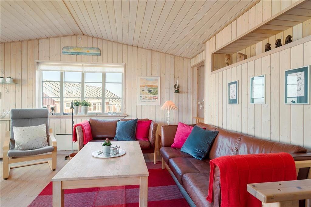 Lyst og velindrettet sommerhus med havudsigt fra stuen og terrassen