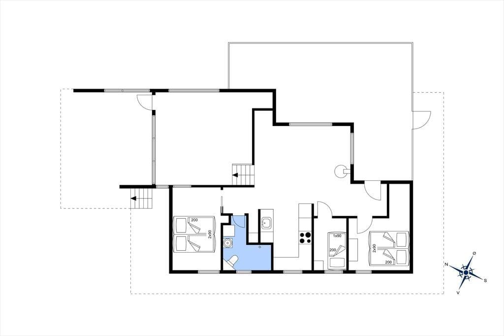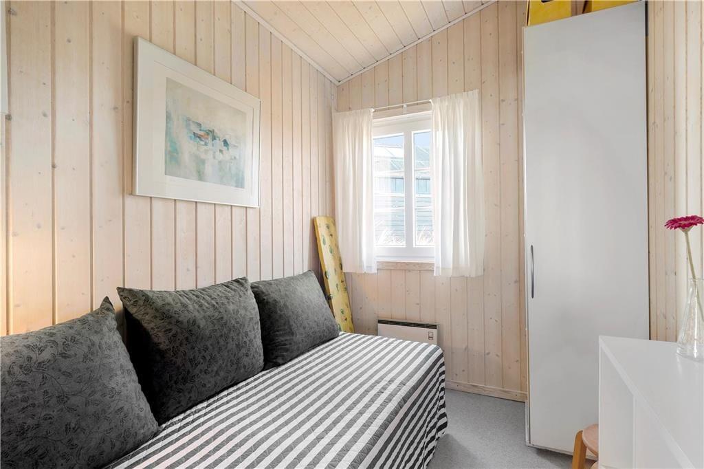 Sommerhuset er bygget på en kuperet grund, så stuen med havudsigt er hævet et niveau over de øvrige rum. I køkken-alrummet, der ligger i åben forbindelse med stuen, er udsigten også fin, for her kan I skue langt ud over det naturskønne sommerhusområde, når I sidder samlet ved spisebordet nær brændeovnen. Begge opholdsrum er hyggeligt indrettet med komfortabelt møblement, der indbyder til afslapning og ferieliv i roligt tempo. På de tre soveværelser, der i alt er udstyret med fem sengepladser, kan I også hurtigt føle jer hjemme, og selv badeværelset præsenterer sig på pæn og velholdt vis med vaskemaskine, gulvvarme og bruseniche.