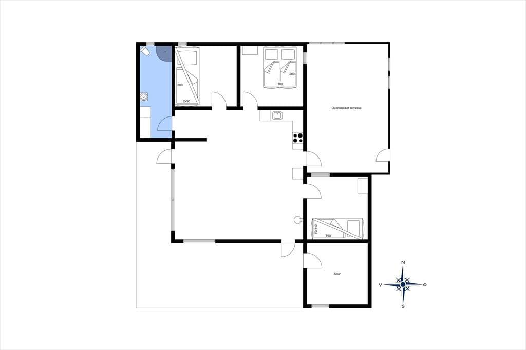 Inden døre i sommerhuset kan I se frem til at hygge jer i den lyse stue, som er udstyret med glasdøre og vinduer vendt mod to verdenshjørner. Hvis vejret er til det, kan I tænde op i brændeovnen og lade varmen sprede sig, mens I ser fjernsyn i sofaafdelingen og spiller spil omkring spisebordet. Madlavningen kan også nemt blive til et hyggeprojekt i køkkenet, der på velfungerende vis ligger som en integreret del af opholdsrummet. Badeværelset er ikke bare indrettet med bruser, men også med vaskemaskine og tørretumbler, og på de tre soveværelser er der i alt plads til seks feriegæster.