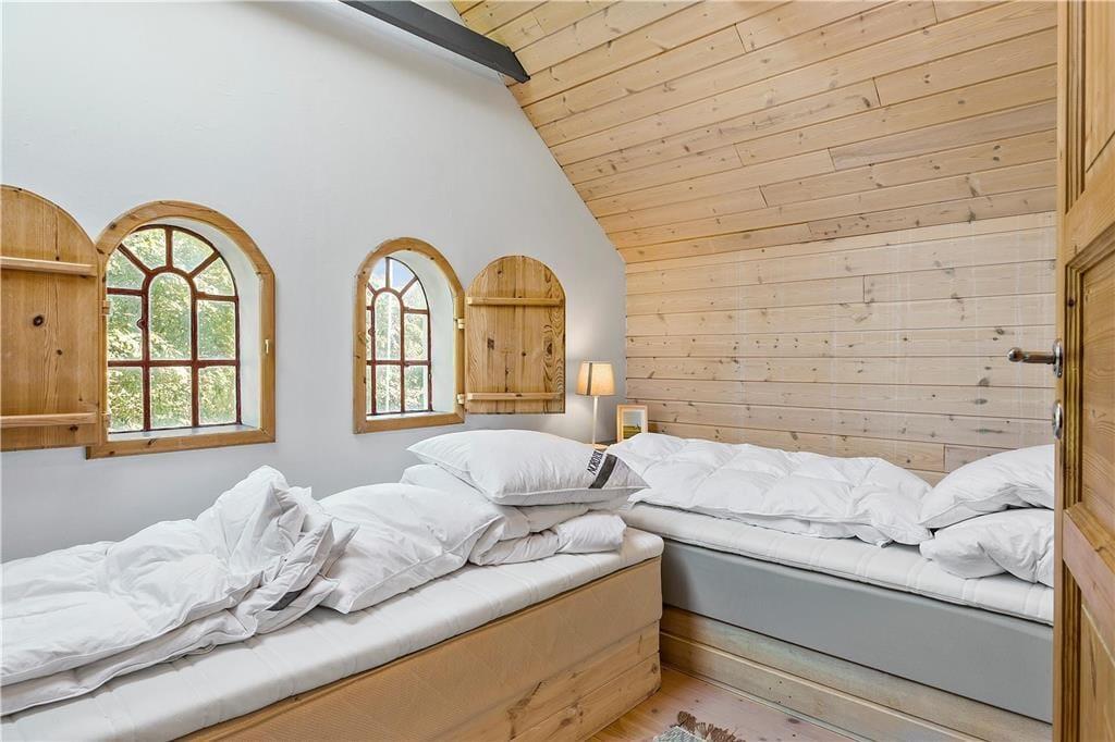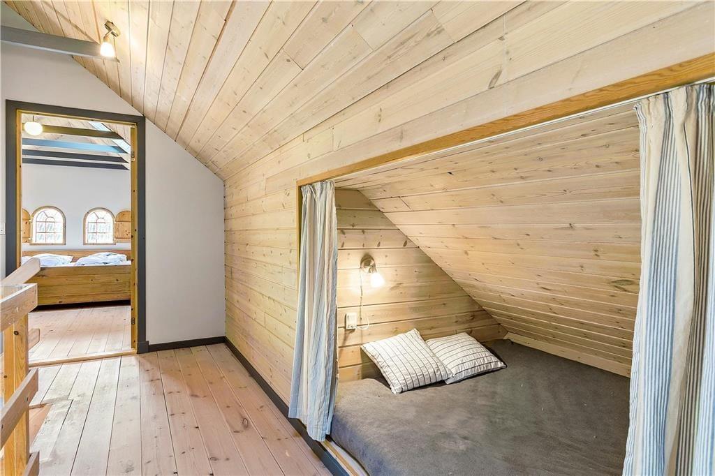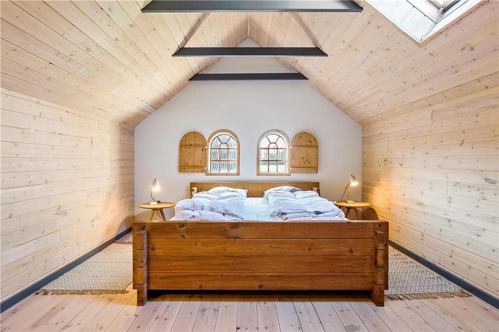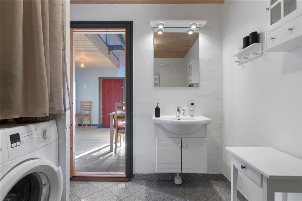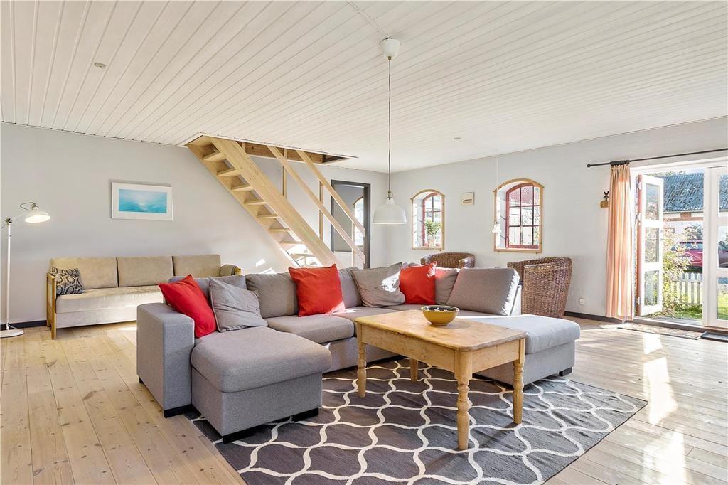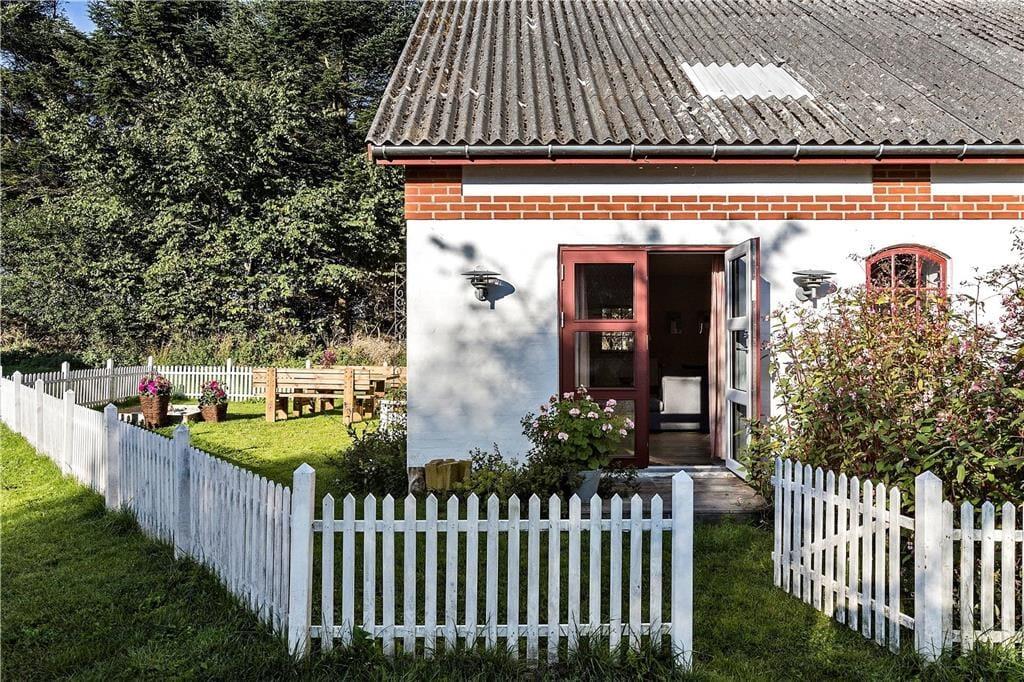 En gang rummede feriehuset gårdens traktorer og øvrige maskiner, og den oprindelige charme var det vigtigt for gårdens familie at bevare, da de besluttede sig for at indrette et feriehus. Derfor allierede de sig med en dygtig arkitekt og en lokal snedker med sans for detaljerne. Det er der kommet et helt særligt feriehus på 130 kvm ud af, skræddersyet til at danne rammen om jeres ferieoplevelser. Feriehuset er i to etager og rummer en stor stue og et lækkert køkken-alrum med brudt etageadskillelse og ovenlysvindue. Køkkenet har opvaskemaskine, mikrobølgeovn, ovn, komfur, køleskab og fryser. Feriehuset er i det hele taget indrettet med charme og opmærksomhed for detaljer. Indretningen er velgennemtænkt og farverne er afstemt. På 1. salen finder man et stort lækket soveværelse med dobbeltseng og et mindre værelse med 2 enkeltsenge. Hertil kommer en hyggelige og charmerende alkove.