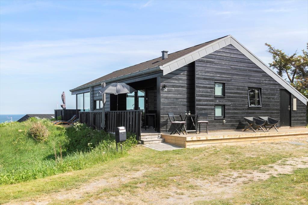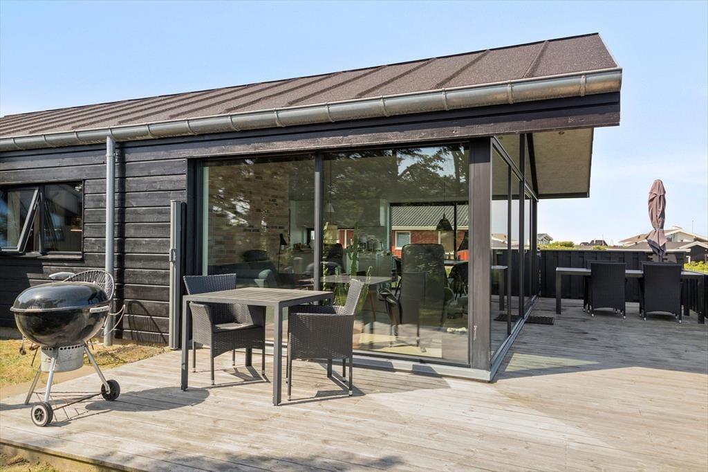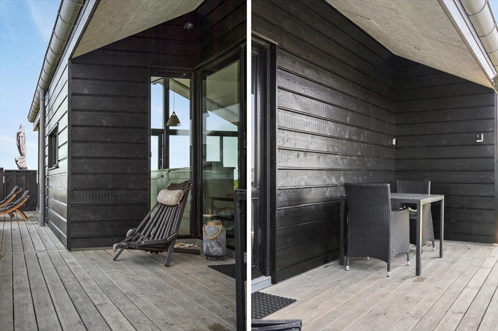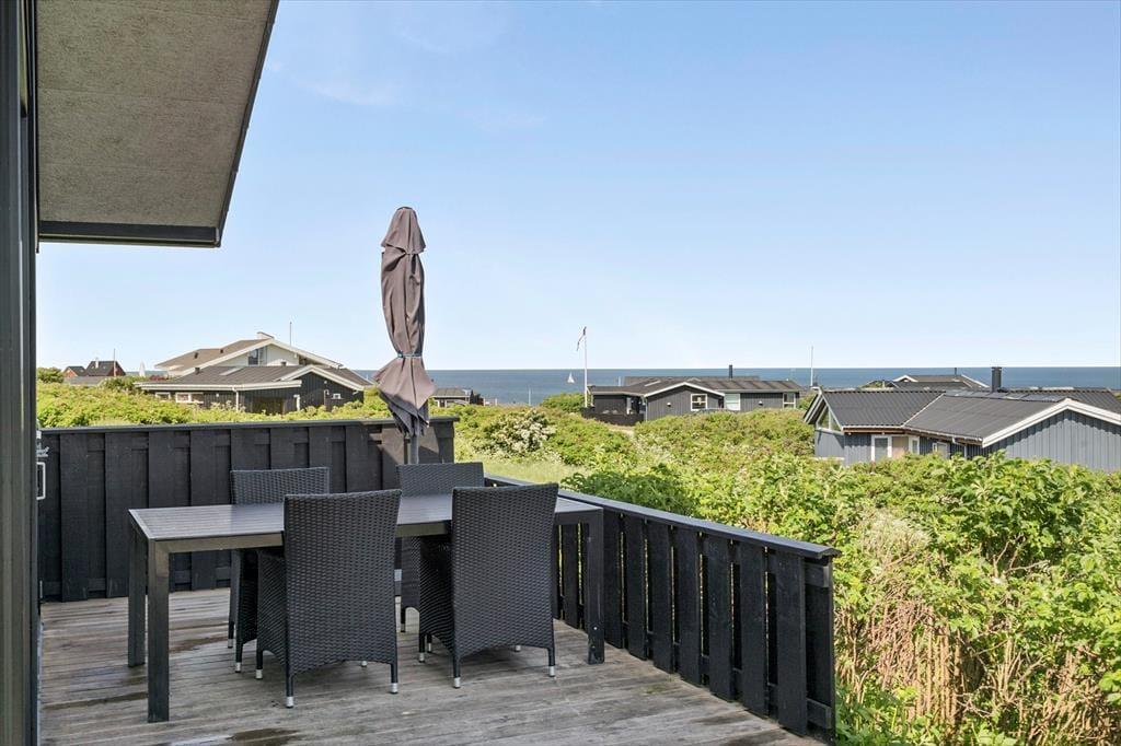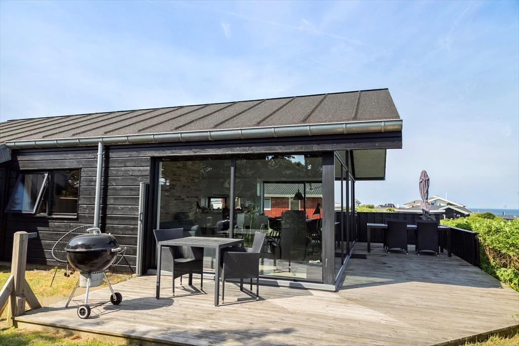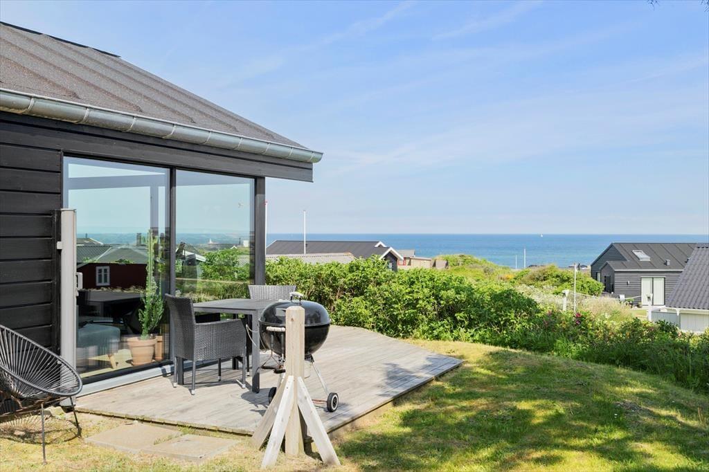 Uanset om I er til sol eller skygge, har I rig mulighed for at finde en god opholdsplads på de dejlige terrasser, der ligger rundt om sommerhuset. Havemøbler og liggestole er til rådighed, og der er også en grill, så I kan tilberede aftensmaden ude i den friske luft, mens I nyder synet af havet og duften af naturgrundens hybenbuske.