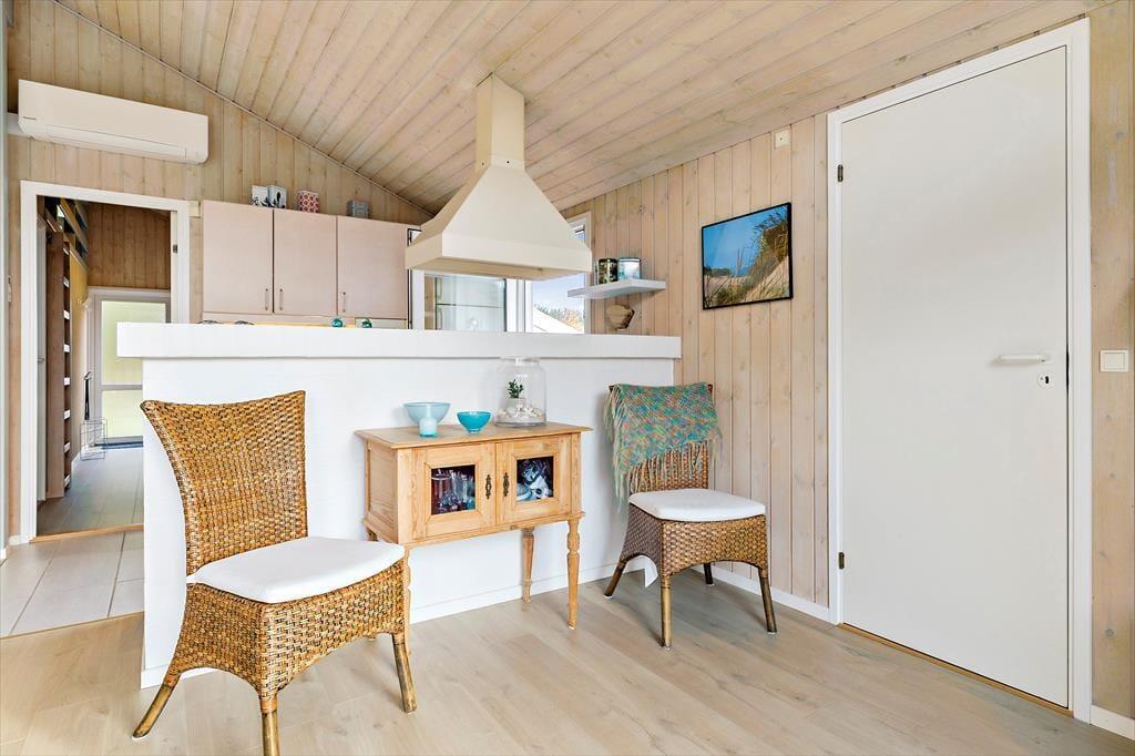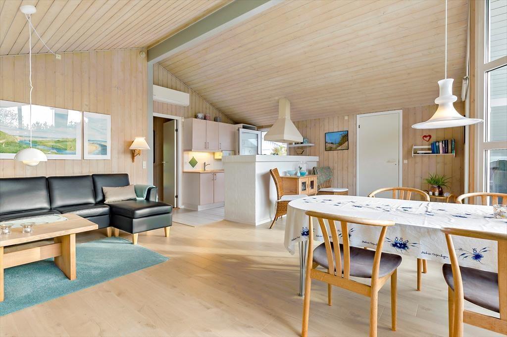 Sommerhus i Lønstrup Strand og By, Nordjylland, med plads til 6 voksne og 1 husdyr. Der er en hyggelig indretning med bl.a. brændeovn, og du finder desuden vaskemaskine, opvaskemaskine og tørretumbler i boligen.