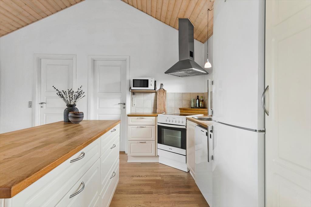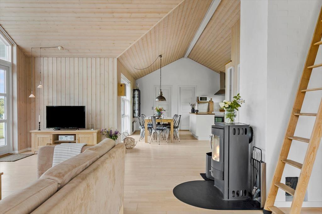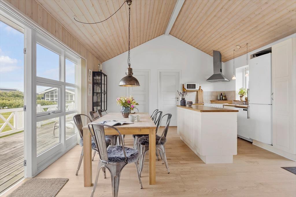 Dette flot indrettede sommerhus er det ideelle valg til familien eller til to eller tre par, som gerne vil opleve en af Nordjyllands skønneste områder sammen. Med tre værelser er her god plads til seks overnattende personer, som kan hygge sig sammen i det store opholdsrum, hvor køkkenet er placeret i den ene ende. I stuen er et helt fantastisk lysindfald fra den store vinduesgavl; her kan man sidde i varmen fra brændeovnen og nyde udsigten til haven, og på de varme dage kan man åbne op til terrassen. Sommerhuset er godt udsyret med hårde hvidevarer og andre hjælpemidler, og på det flotte badeværelse kan man slappe af efter en lang dag på farten med et varmt bad i det nedsænkede spabad. Dette sommerhus har kort sagt alt, hvad man behøver for at holde en afslappende og hyggelig ferie.