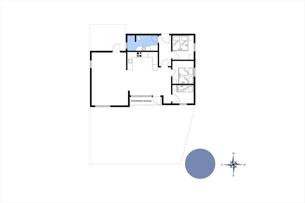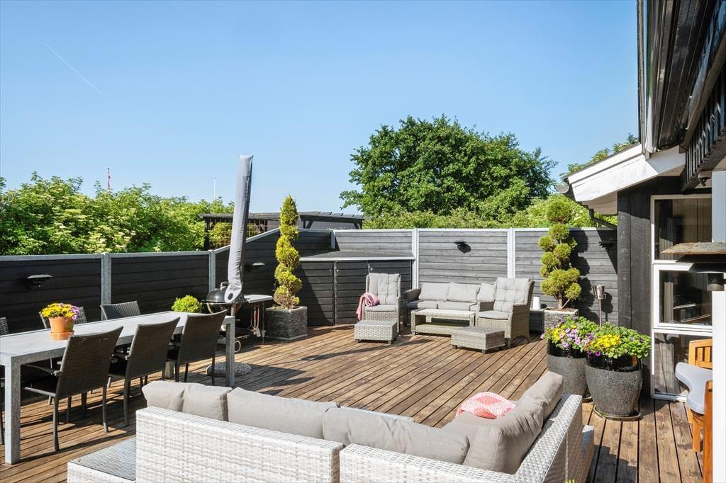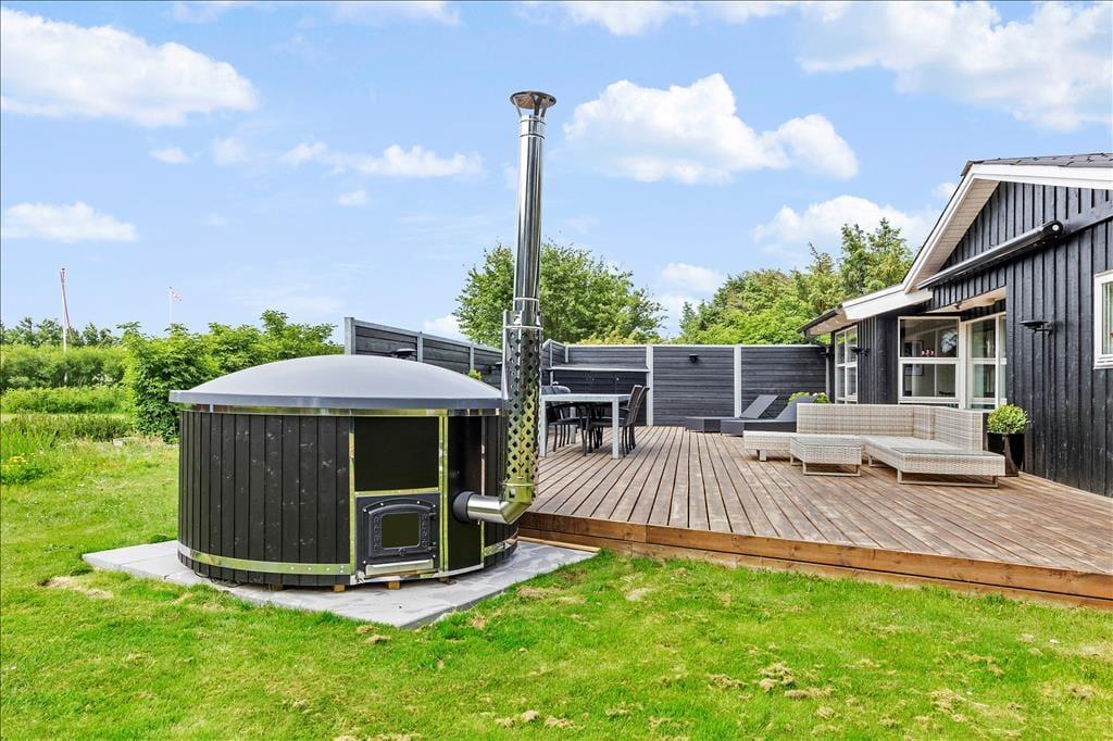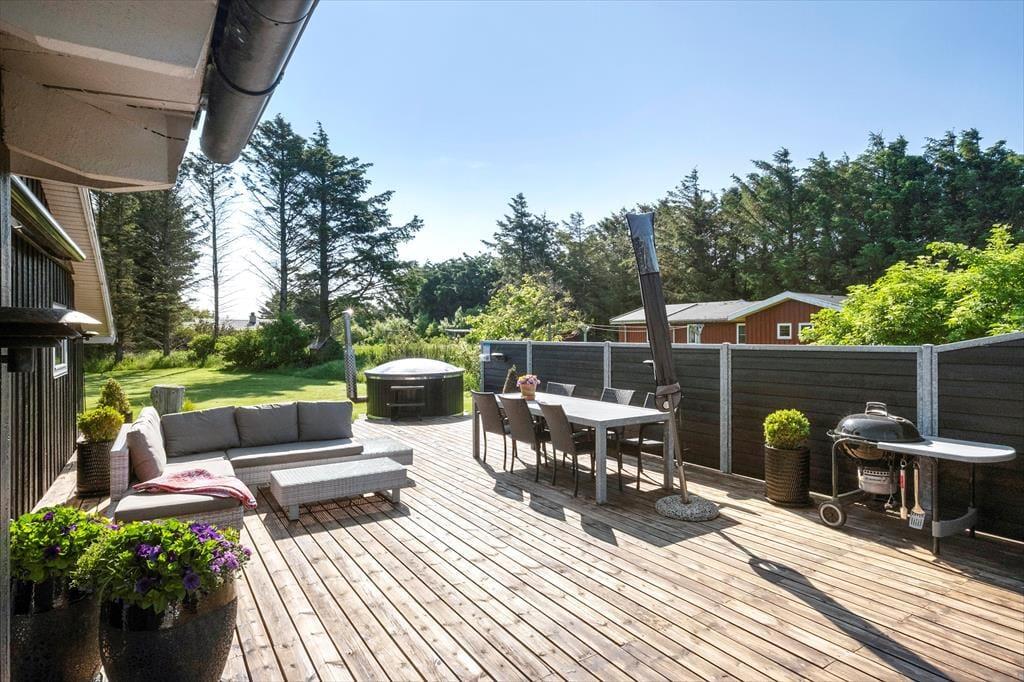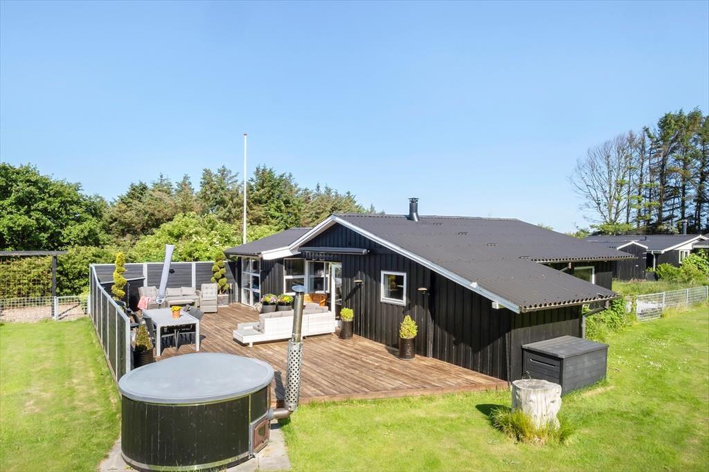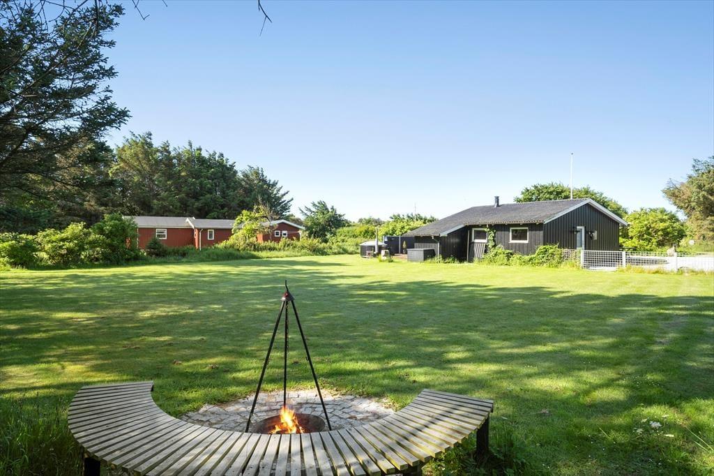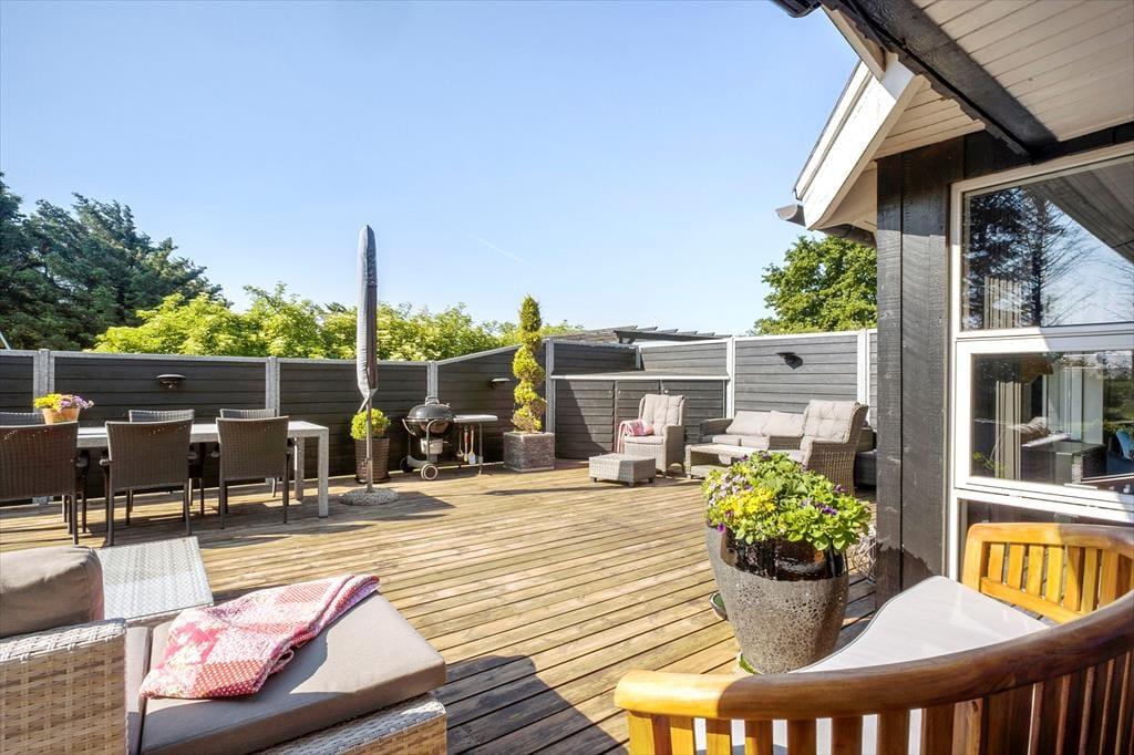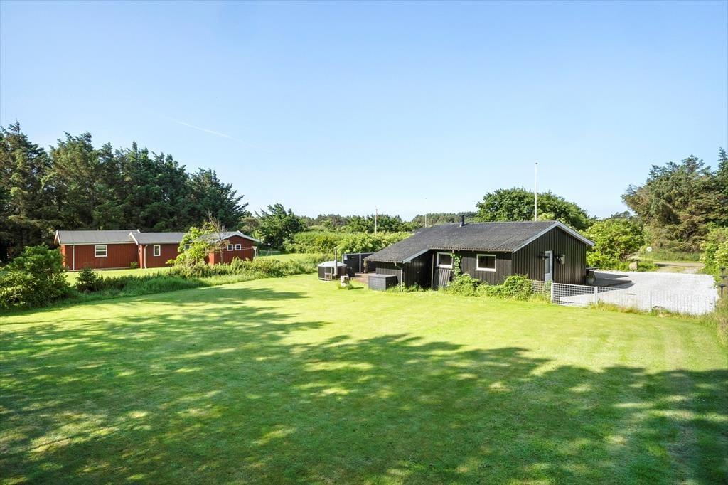 Sommerhuset ligger på en indhegnet havegrund med masser af plads til leg og boldspil. Der hører to terrasser til sommerhuset; ved indgangen er en mindre vestvendt terrasse, og på sydøst siden er den store terrasse, hvor der er masser af plads til at nyde solen og livet og den skønne udsigt ud mod haven.