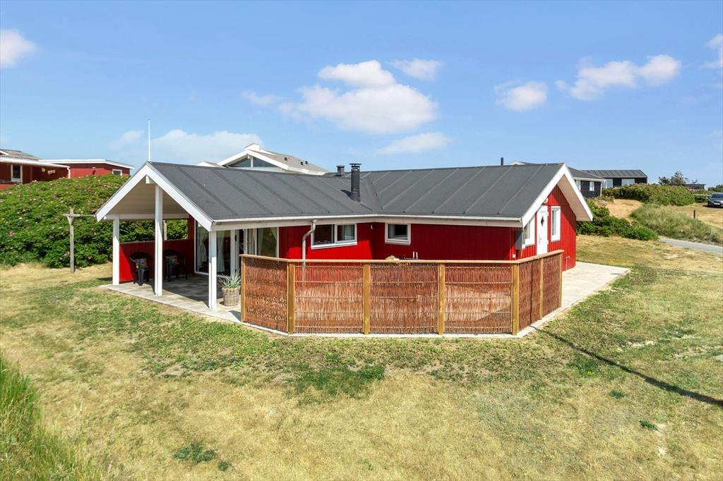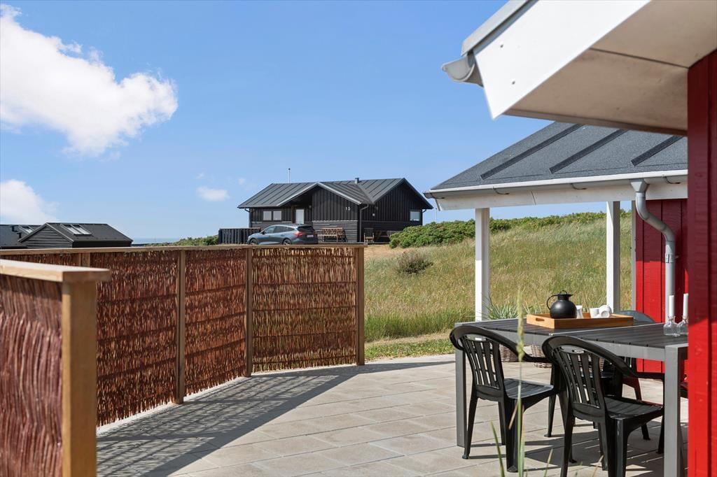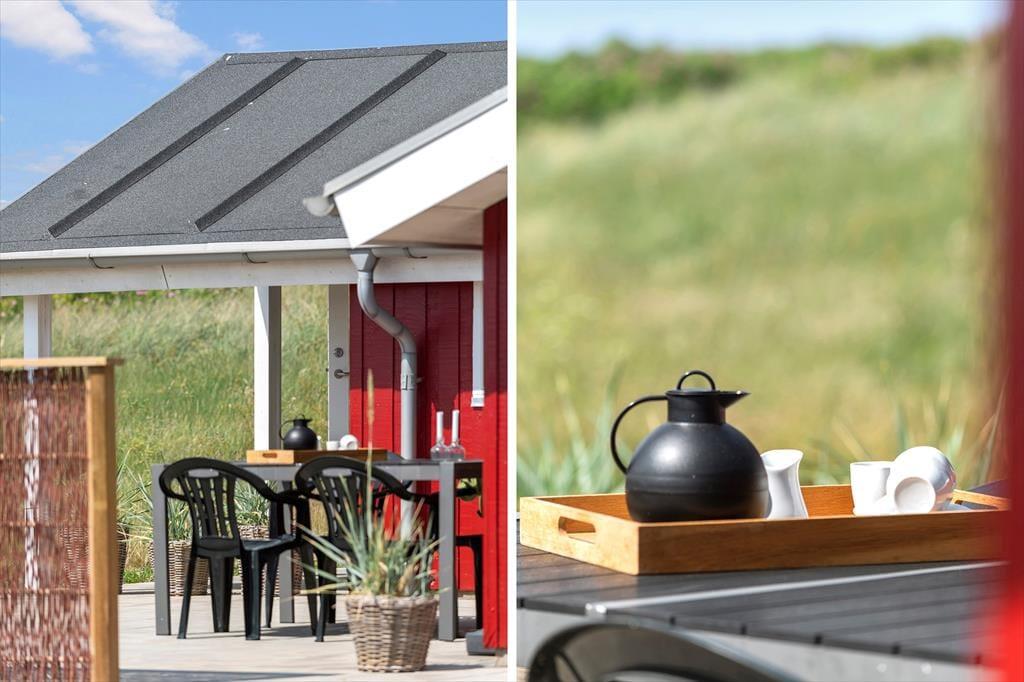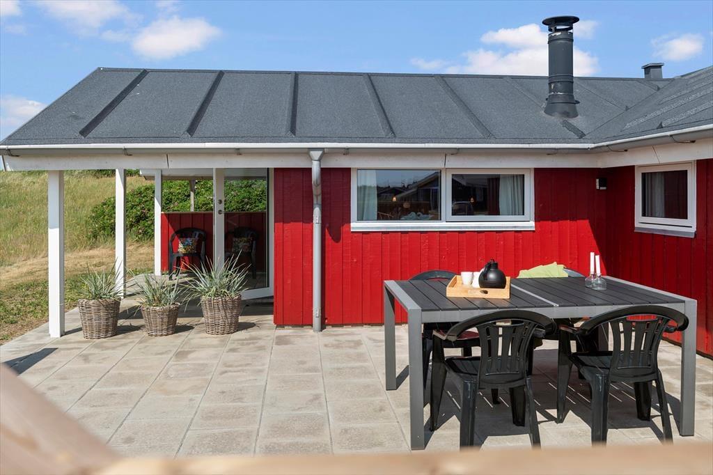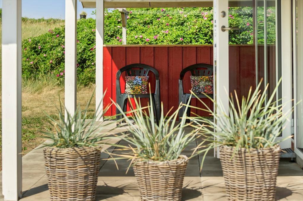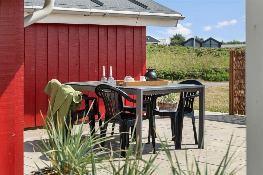 Ved dette hus er der to gode terrasser, hvoraf den ene er overdækket. Der er således mulighed for at vælge, om man er til lidt ly for en eventuel regndråbe, eller om man hellere vil sidde på den lidt mere beskyttede terrasse, som er delvist indhegnet. Hvis man skal variere ferien med lidt boldspil, er der rig mulighed for det på grunden.